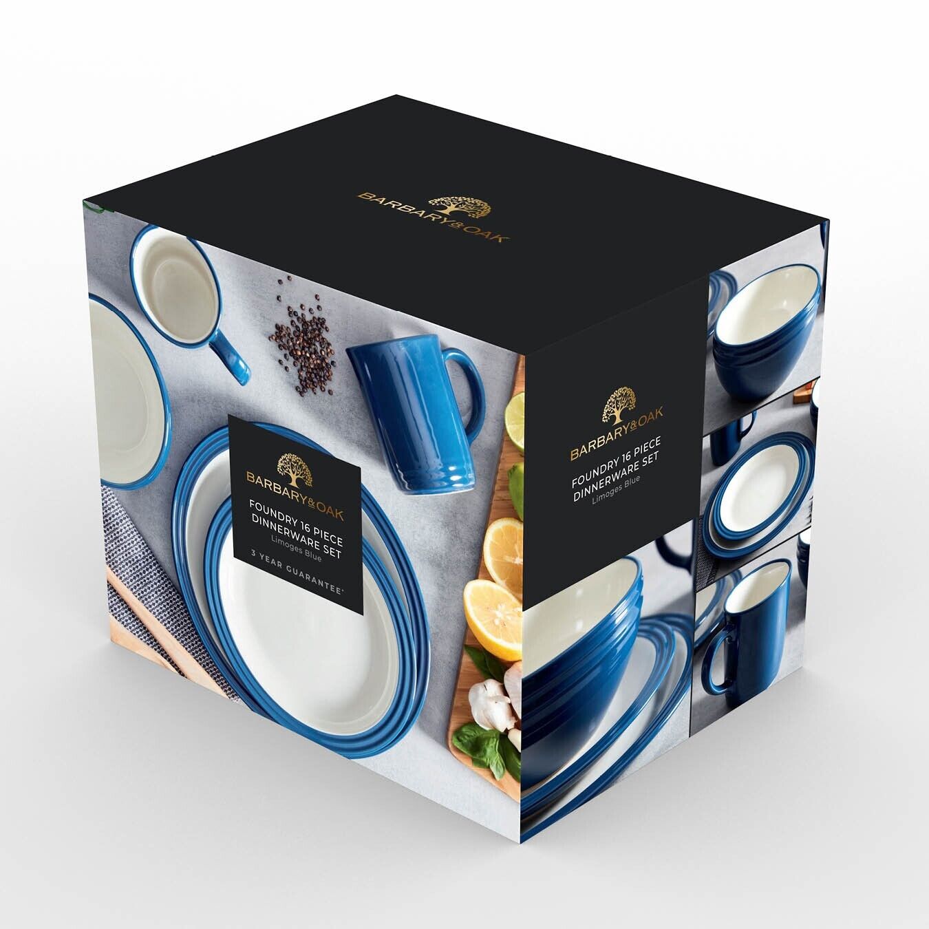 Brand New Barbary & Oak Foundry 16 Piece Dinnerware Set in Limoges Blue. Fast Dispatch & Free Next Working Day Delivery. 3 Year Manufacturer Guarantee