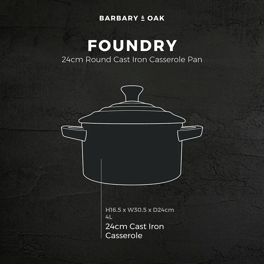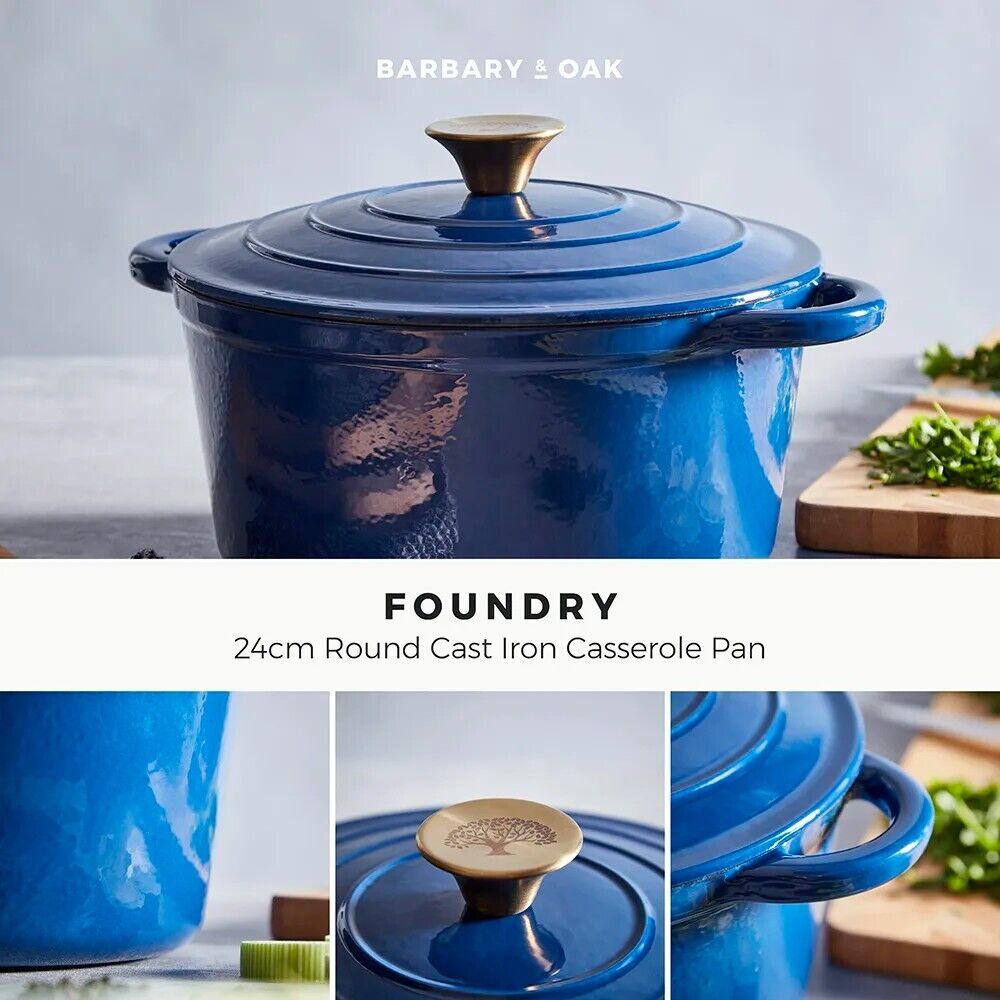 Brand New Barbary & Oak Foundry Round 24cm Casserole Pan in Limoges Blue. Fast Dispatch & Free Next Working Day Delivery, 25 Year Manufacturer Guarantee