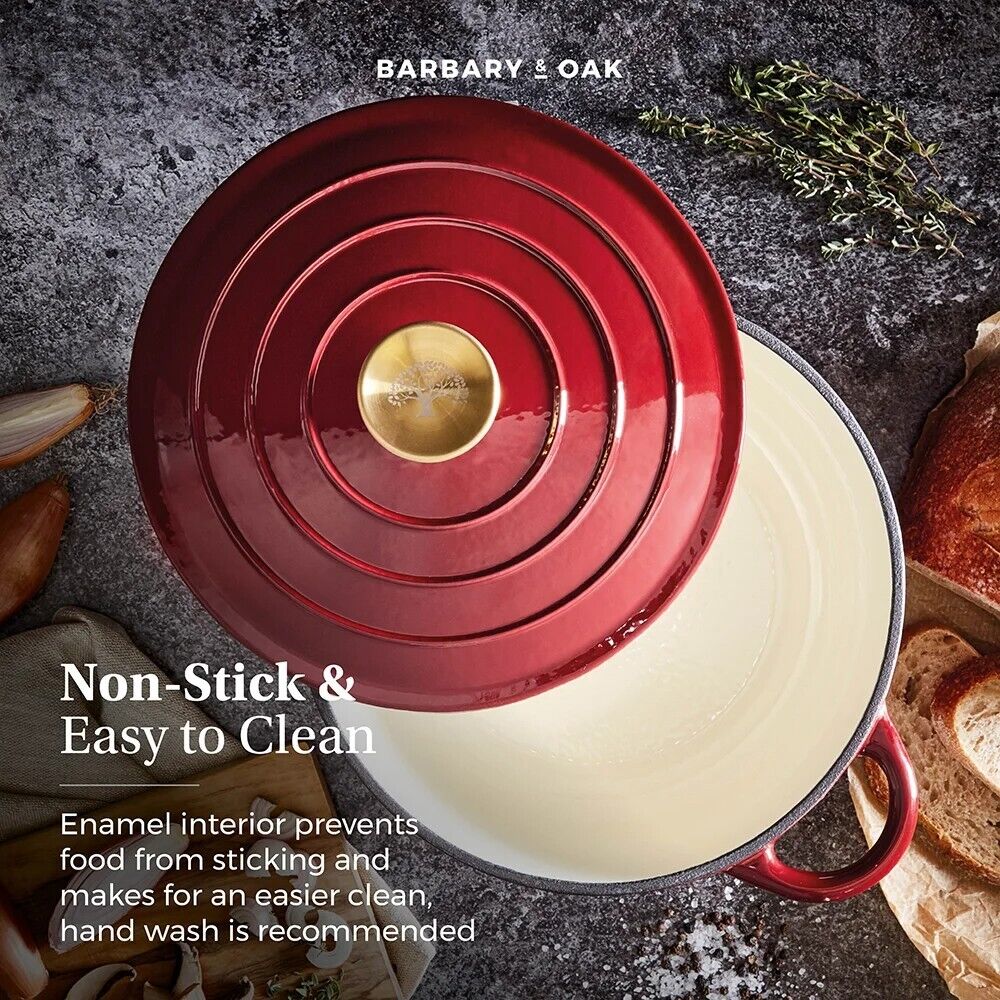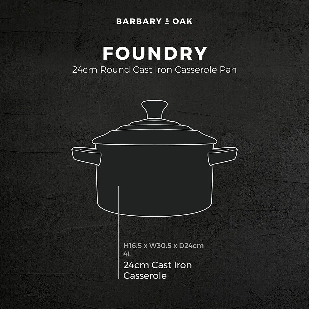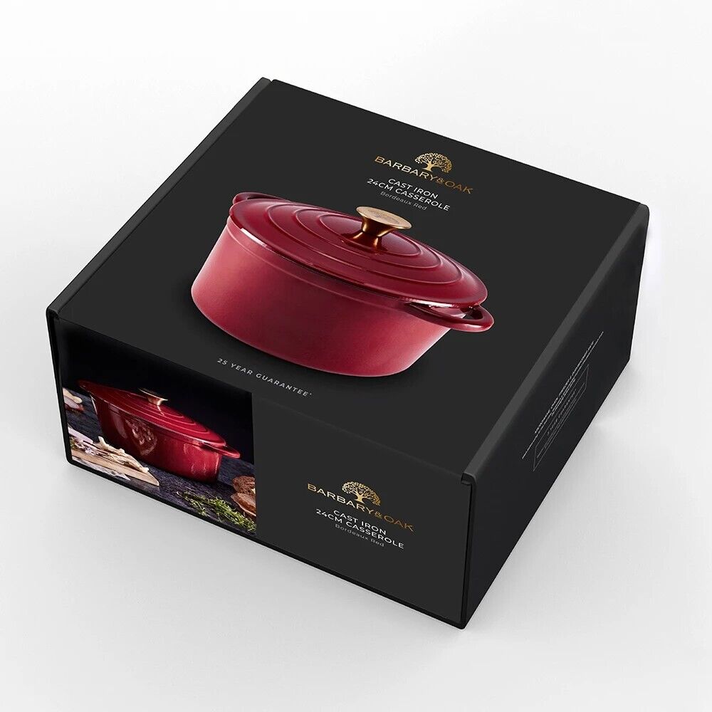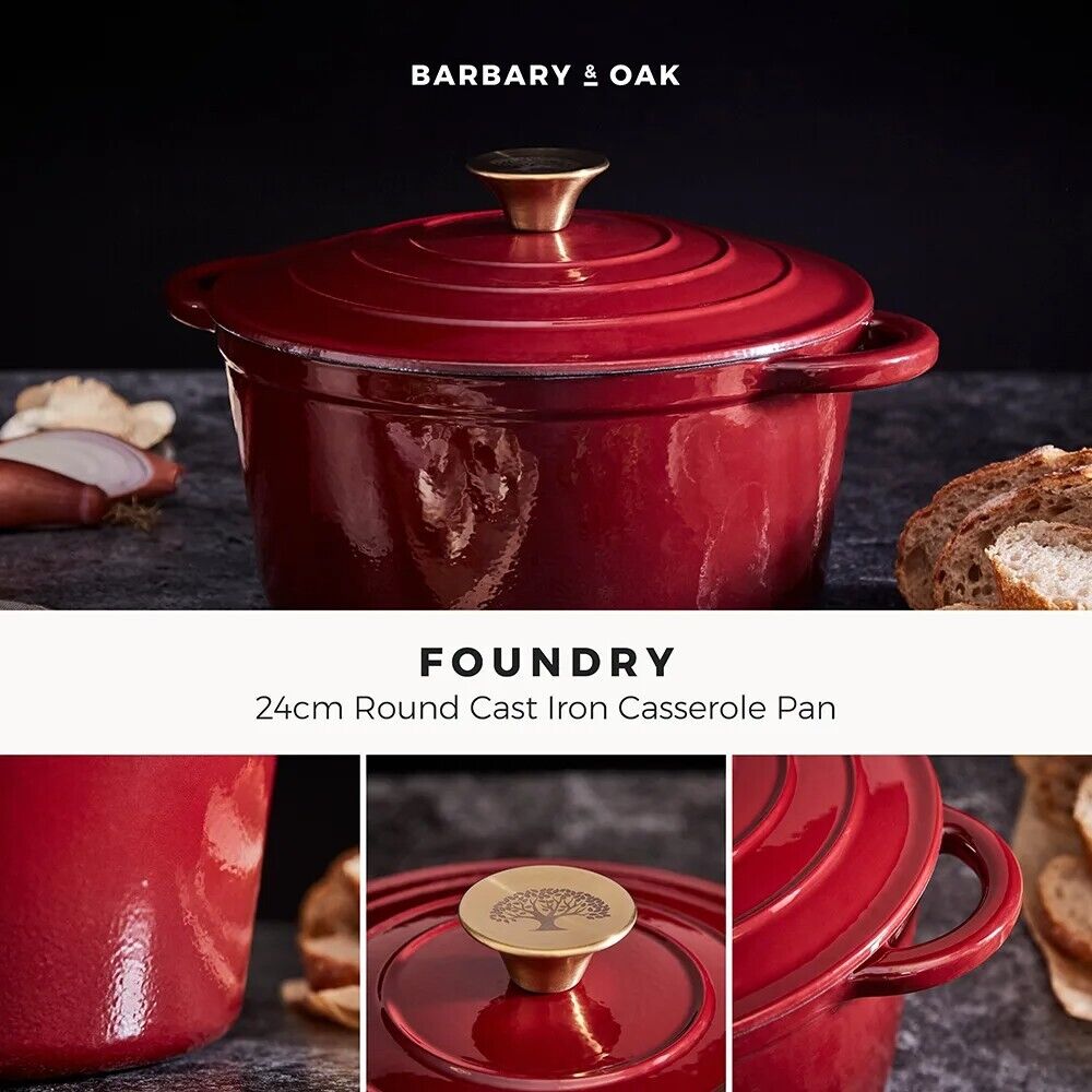 Brand New Barbary & Oak Foundry Round 24cm Casserole Pan in Bordeaux Red. Fast Dispatch & Free Next Working Day Delivery, 25 Year Manufacturer Guarantee