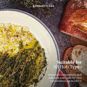 This Barbary & Oak 24cm casserole pan is a reliable cooking companion that any avid cook needs in their kitchen. Featuring a quality cast iron construction, this material is highly durable and is built to last a lifetime, making it perfect for those who love to make delicious casseroles for all the family. This material also helps retain the heat, keeping your food warmer for longer and providing even heat distribution for better cooking results. The quality enamel interior coating prevents food from sticking and burning, making it easy to clean after an intense cooking session. A domed lid is included, which helps lock in and retain all the moisture to ensure your food is tender with an enhanced flavour. The handle is ergonomically designed, providing you with a comfortable and safe grip when cooking or serving. Versatile in its design, this casserole pan is suitable for all hob types including induction.