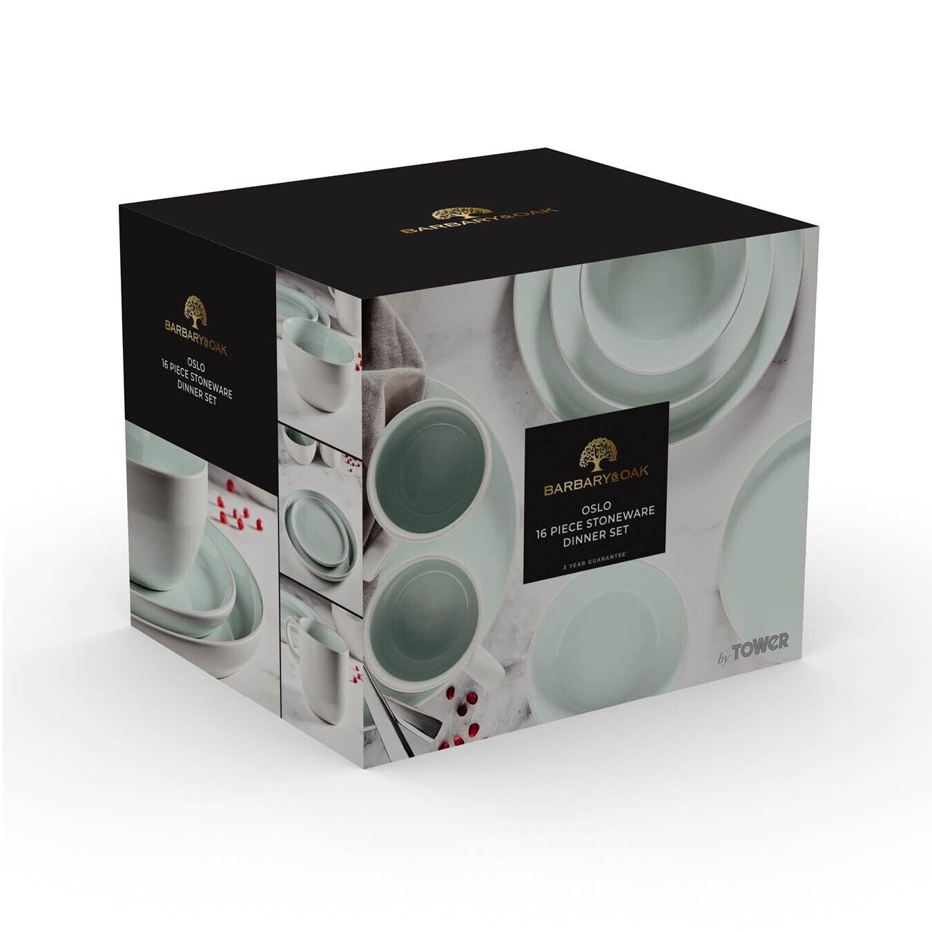 Brand New Barbary & Oak 16 Piece Dinner Set in Mint Green & White. Fast Dispatch & Free Next Working Day Delivery. 3 Year Manufacturer Warranty