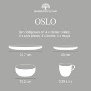 Bring some beautiful Scandinavian-inspired style to your home with the Oslo Dinnerware Set. The 16-piece set includes dining essentials for every occasion with 4 dinner plates, 4 side plates, 4 bowls and 4 mugs accommodating for family and guests. Each piece is created using durable stoneware, designed to cater for your dinners and breakfasts for years to come. The matching dinnerware collection is presented with minimalist shapes and light peppermint green-coloured accents to give your table a clean, understated appearance. All items are microwave and dishwasher-friendly, although hand-wash is recommended to protect the premium hand-painted finish.