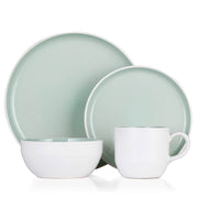 Barbary & Oak Oslo 16 Piece Scandinavian Design Dinnerware Set in Mint Green & White