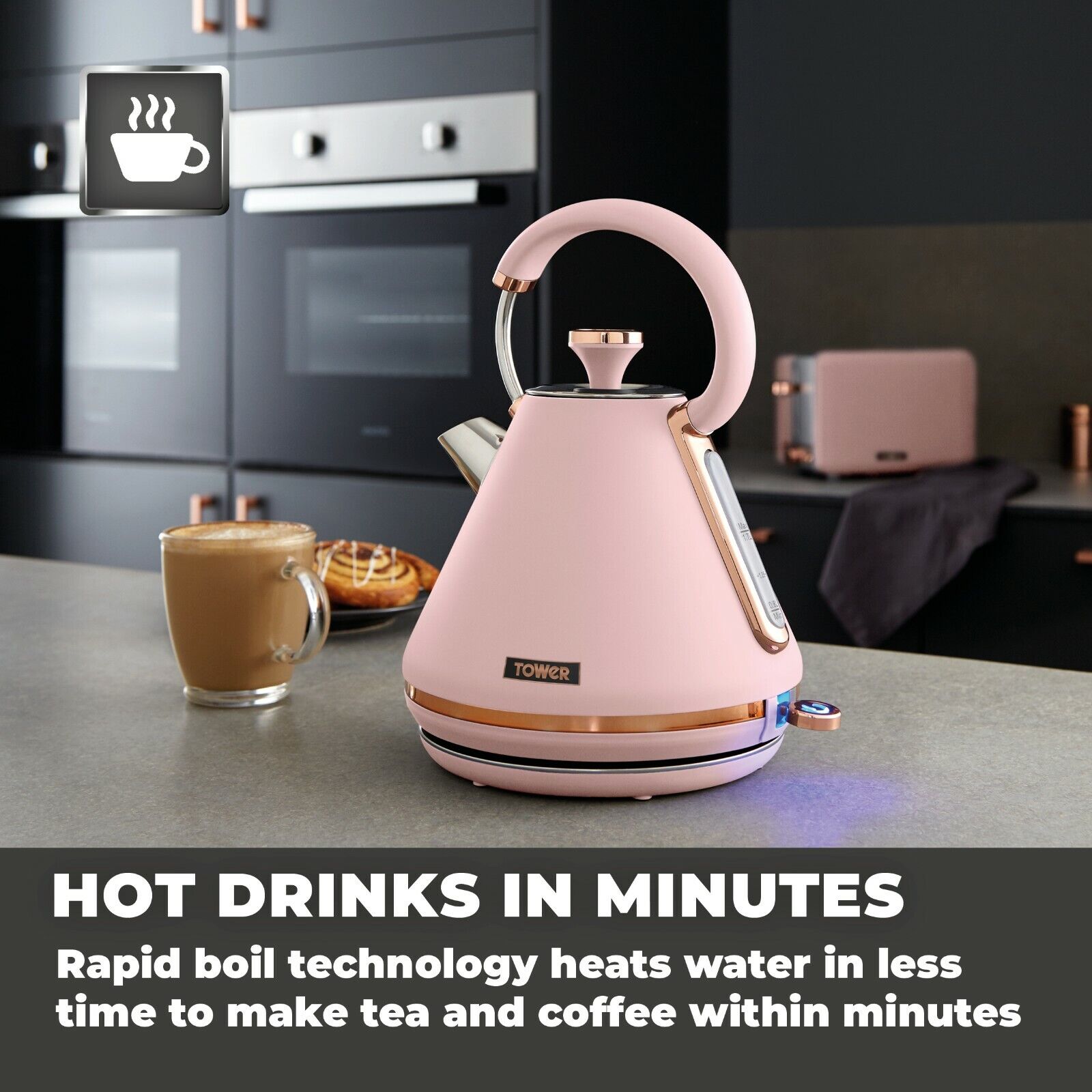 TOWER Cavaletto 1.7L Pyramid Kettle & 2 Slice Toaster Kitchen Set Pink & Rose Gold