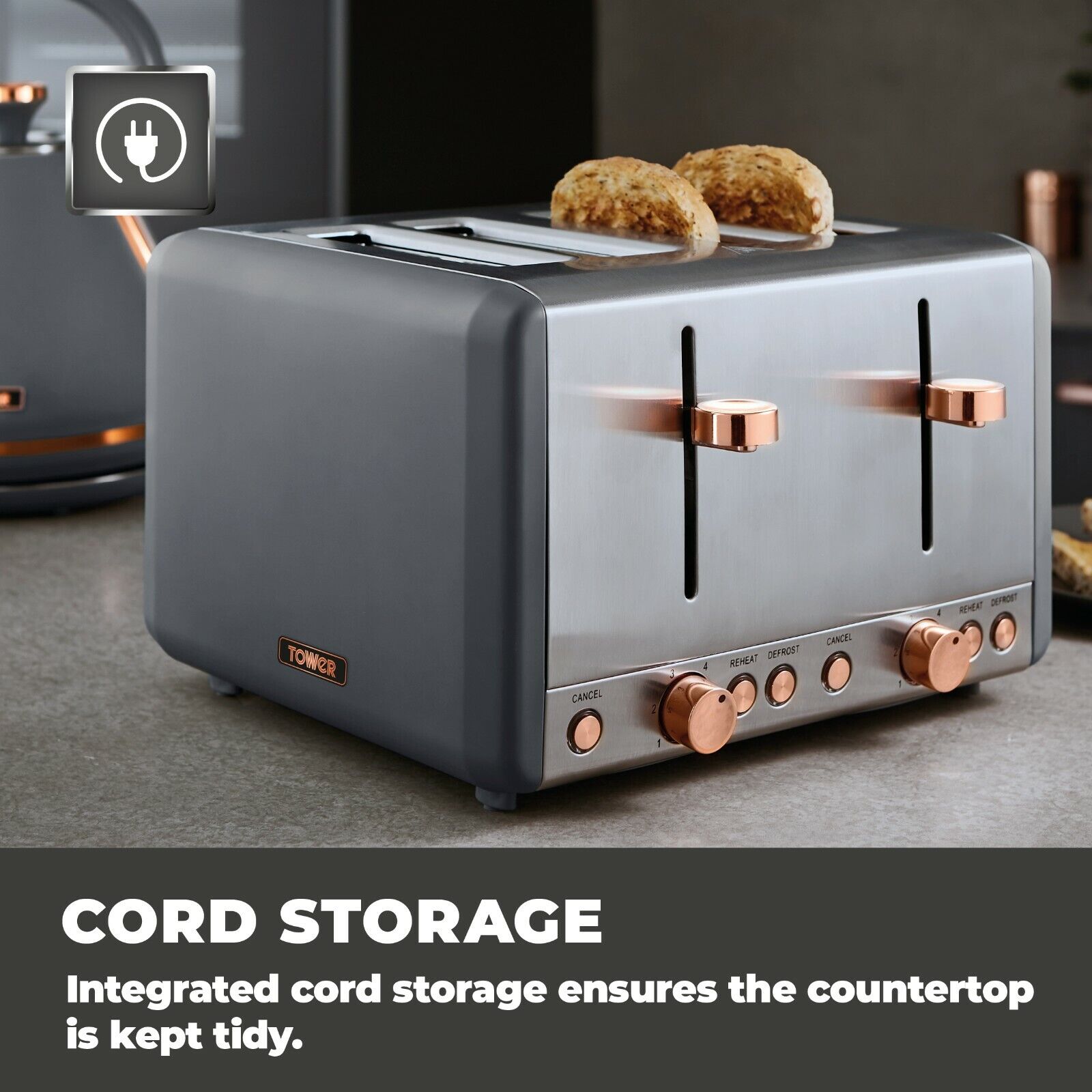 Cavaletto 1800W 4 Slice Toaster in Grey & Rose Gold