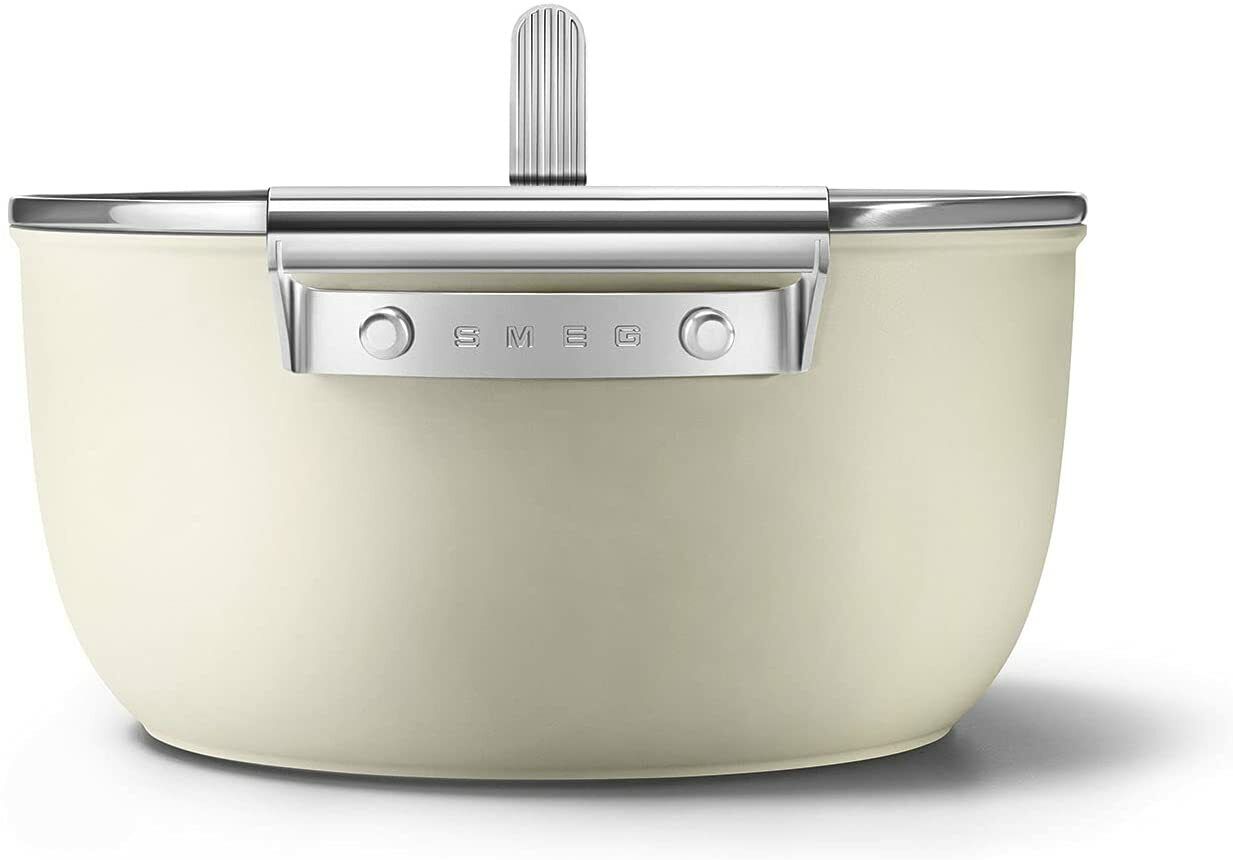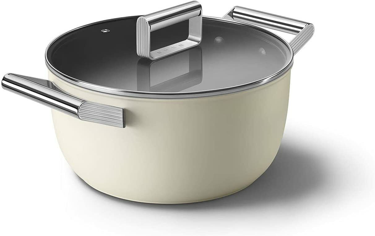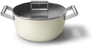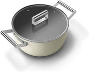 Smeg Cookware 24cm Casserole Pan with 2 Handles & Lid in Cream CKFC2411CRM