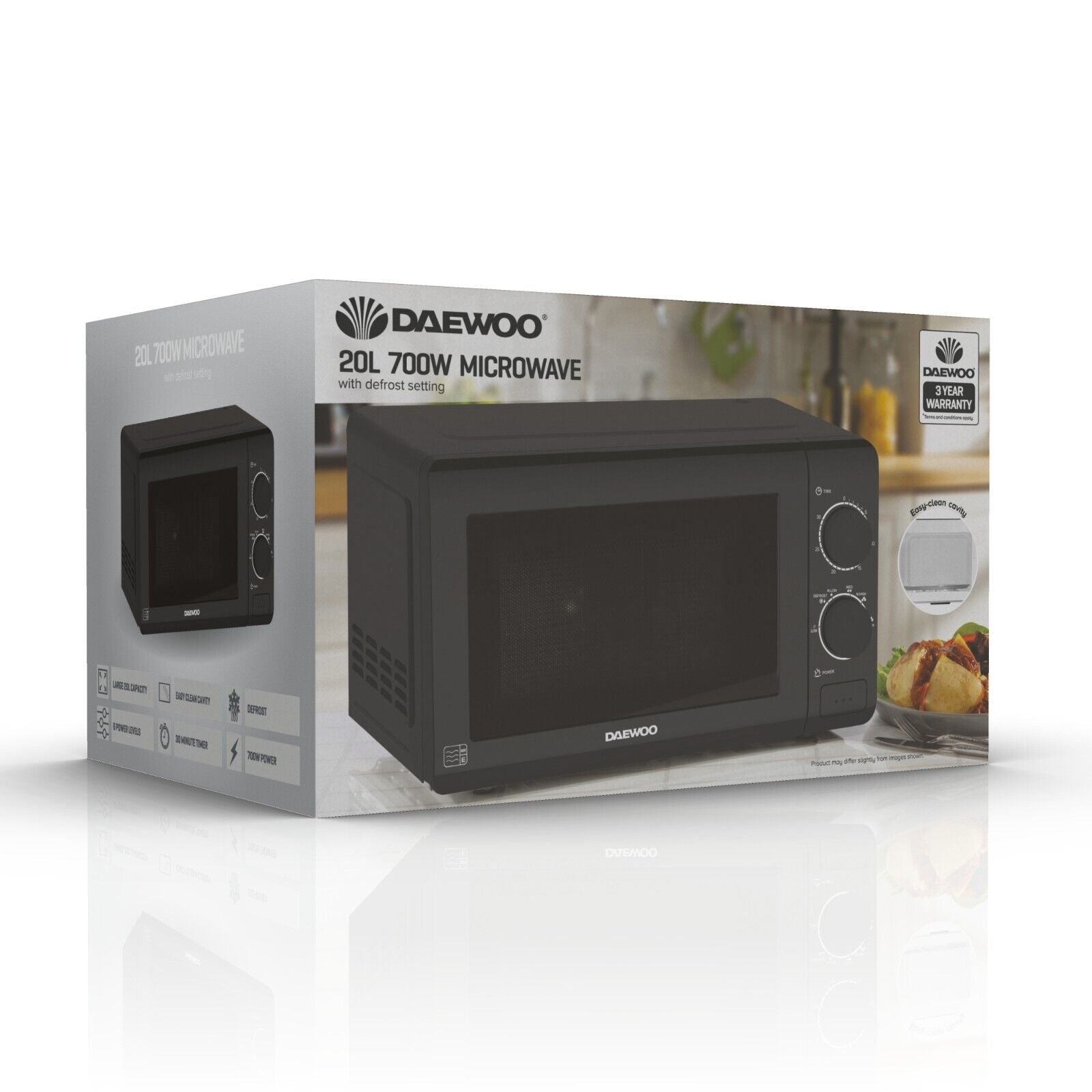 Daewoo Black 700W 20L Manual Microwave Oven SDA2161