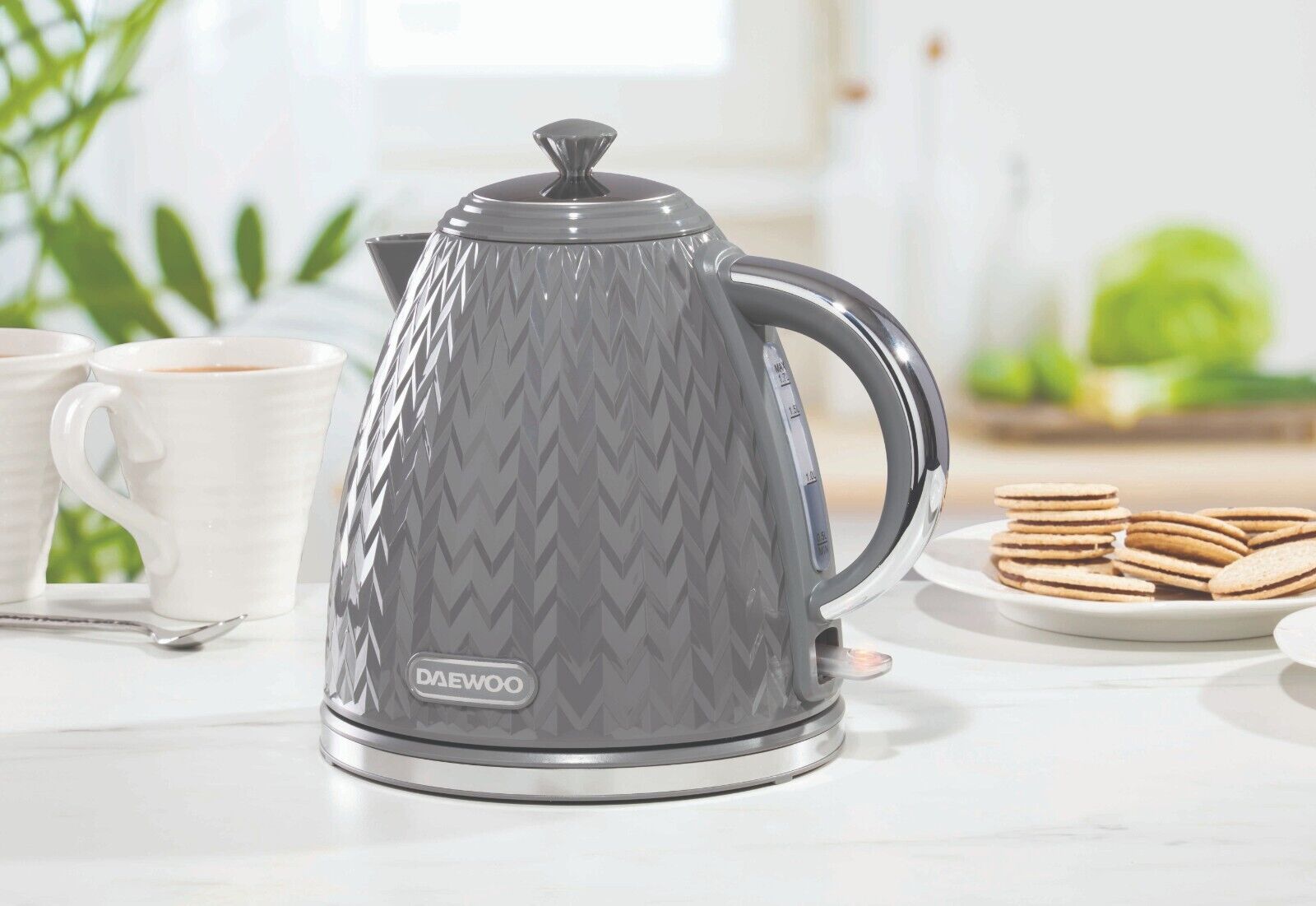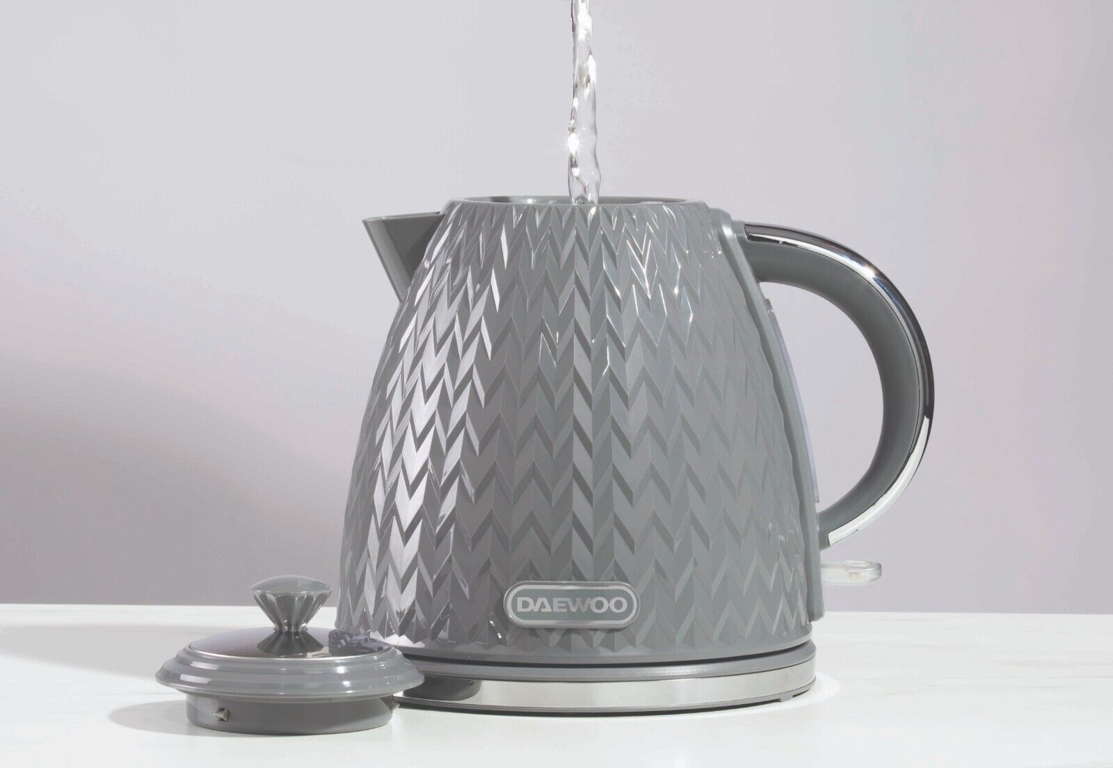 The Daewoo Argyle kettle has proven incredibly popular as a result of its distinctive, contemporary and stylish textured body. Its diamond-patterned body will compliment any kitchen worktop and is sure to look great in any modern home.