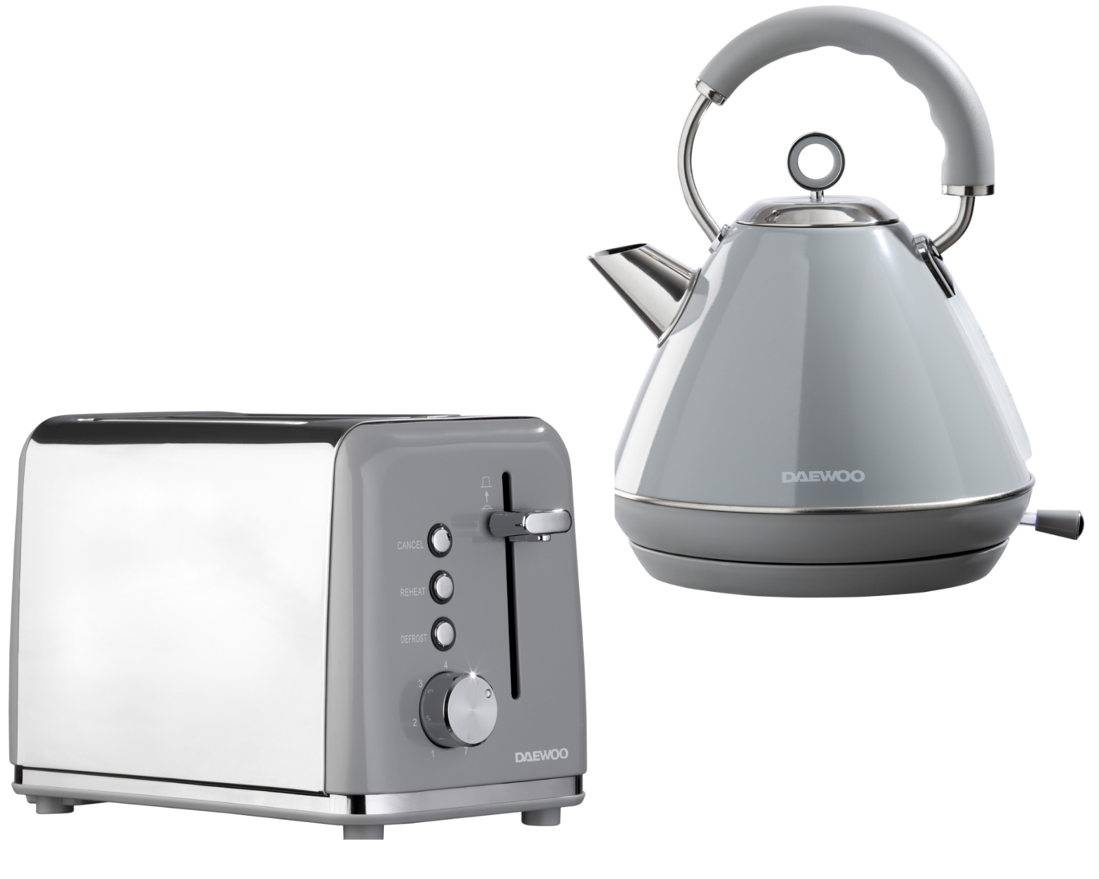 Daewoo Kensington 1.7L 3KW Pyramid Kettle & 2-Slice Toaster Matching Set Grey