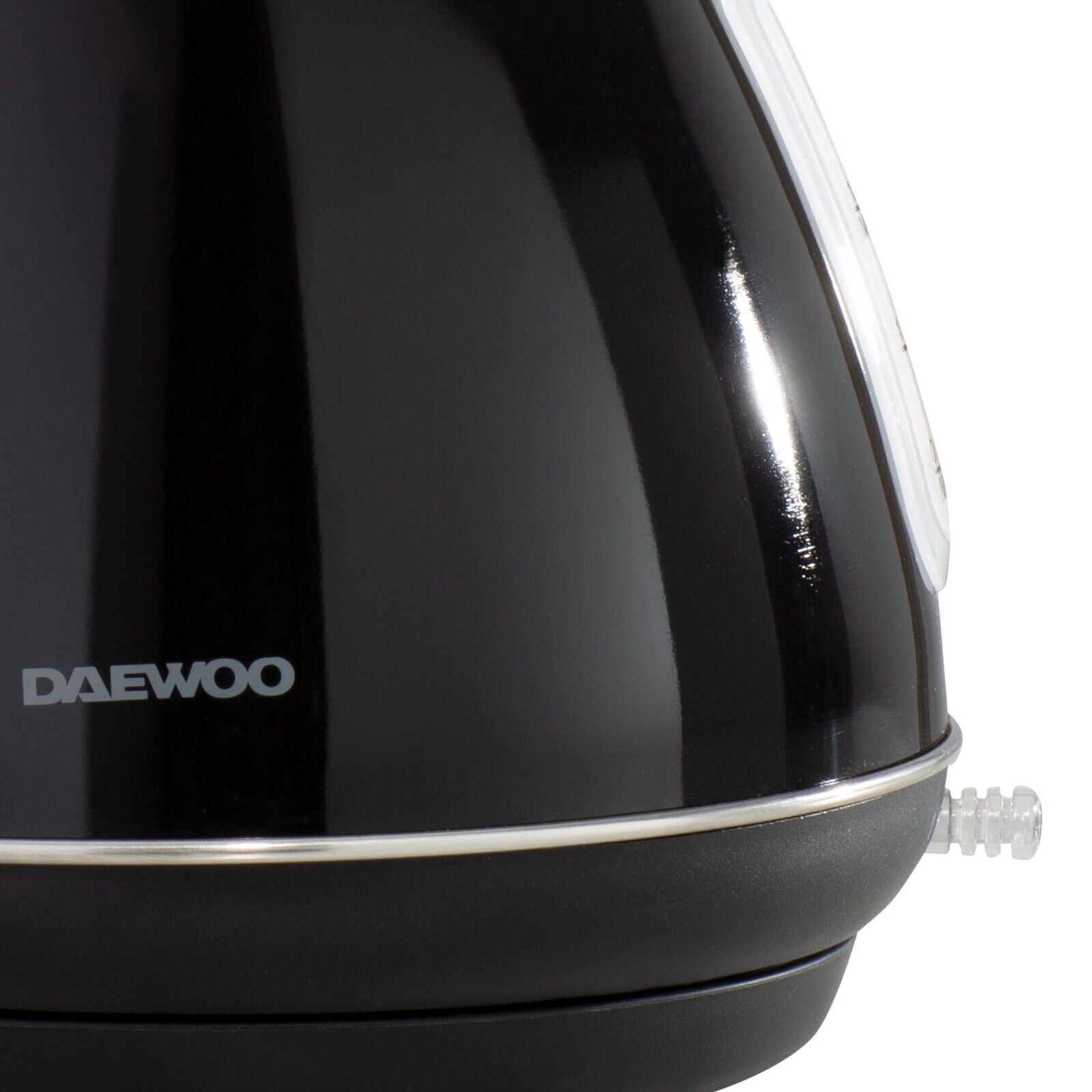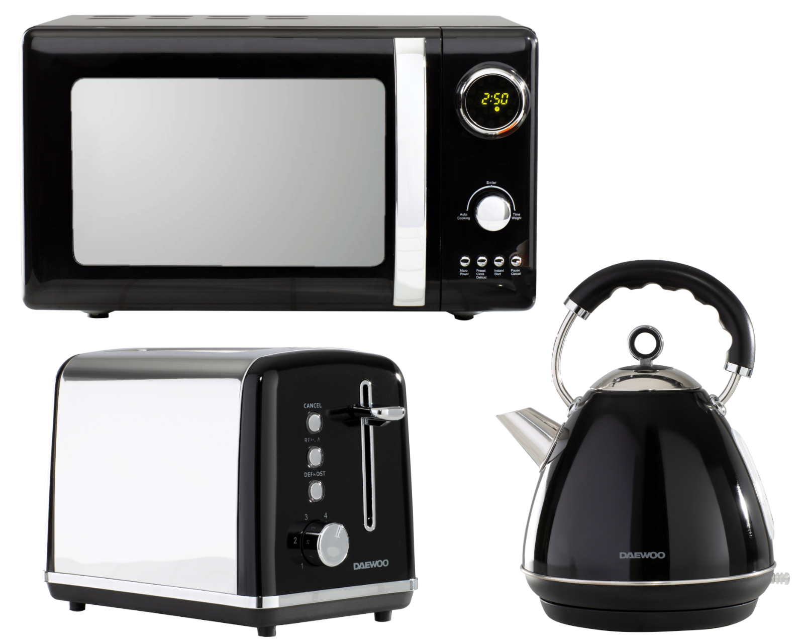 Daewoo Kensington 1.7L 3KW Pyramid Kettle, 2 Slice Toaster & Microwave Matching Set in Black