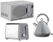 Daewoo Kensington 1.7L 3KW Pyramid Kettle, 2-Slice Toaster & Microwave Matching Set in Grey