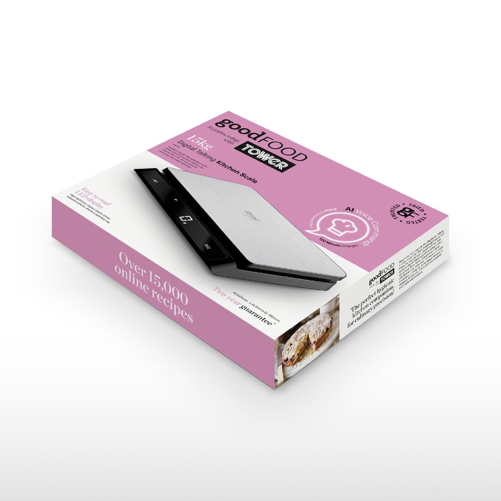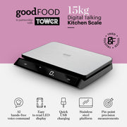 Digital Talking Kitchen Scales from Good Food by TOWER - AI Hands Free 15kg USB