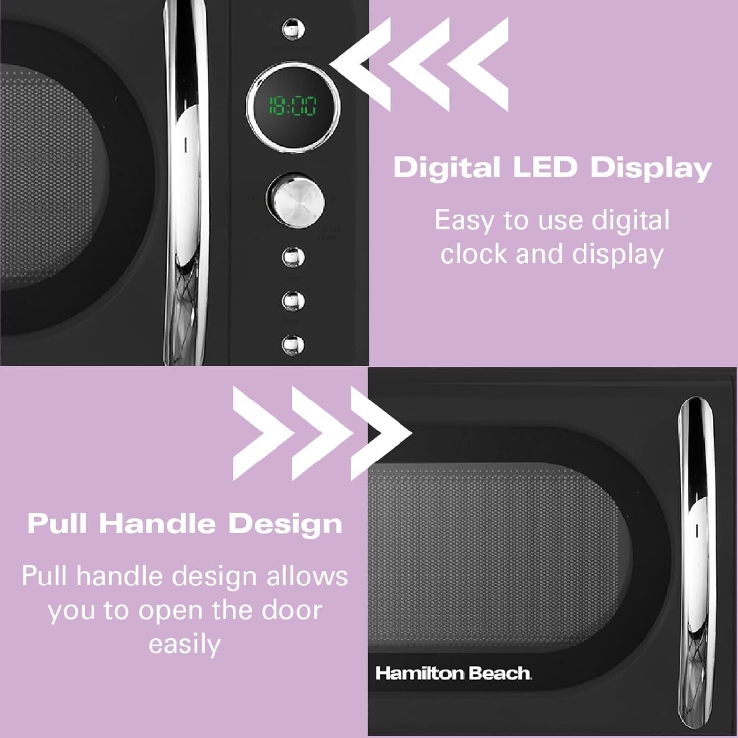 Enjoy easy cooking with this stylish retro inspired Hamilton Beach 700W microwave oven.