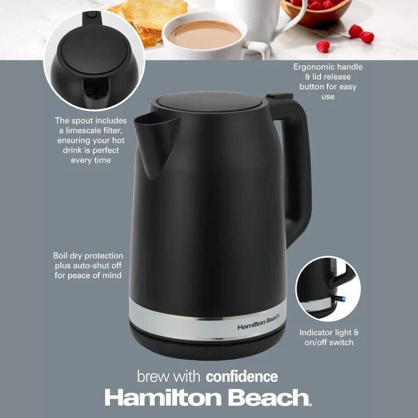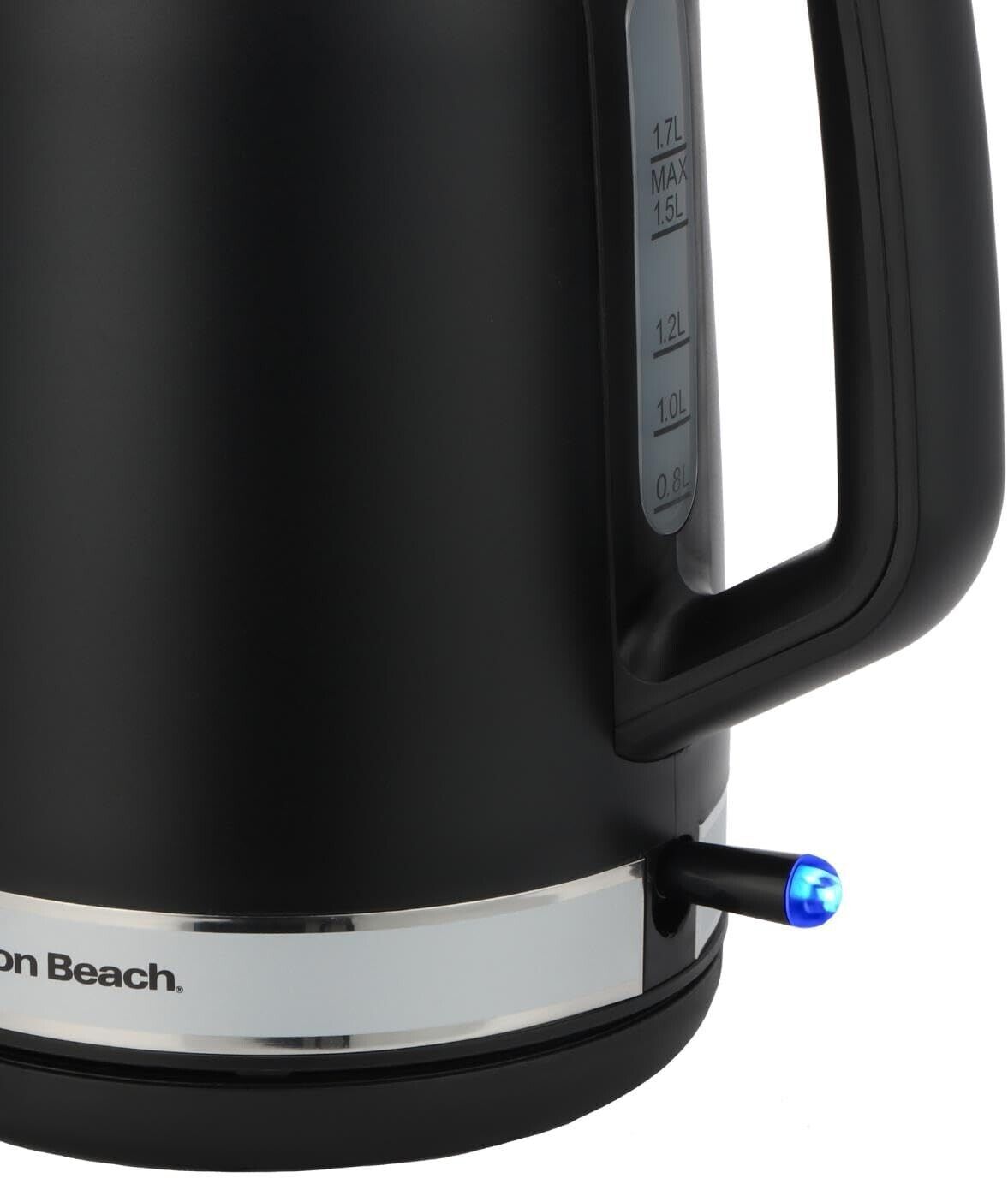 Hamilton Beach Ella 1.7L Kettle, 2 Slice Toaster & 700W 20L Microwave. Modern Matching Set in Matte Black.