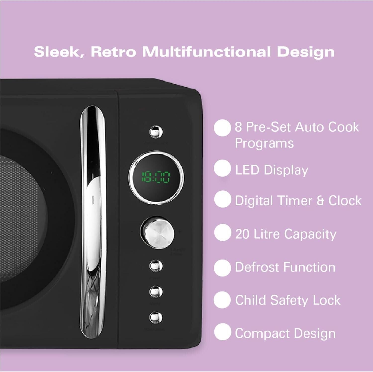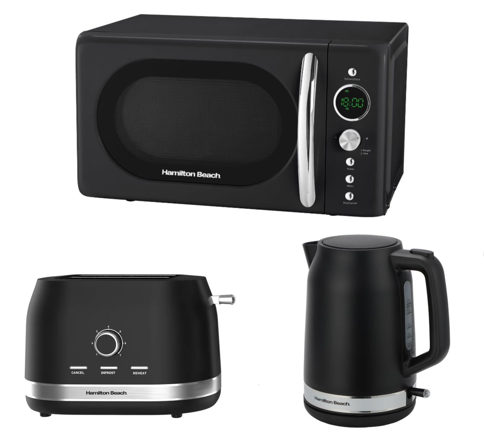 Hamilton Beach Ella 1.7L Kettle, 2 Slice Toaster & 700W 20L Retro Microwave. Modern Matching Set in Matte Black.