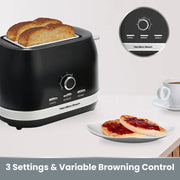 - Even Toasting: The powerful 800W power ensures even and crisp toasting and the wide slots are perfect for toasting thick-sliced bread and bagels. It also comes with 3 settings: defrost, cancel and reheat, ideal for all your toasting needs.