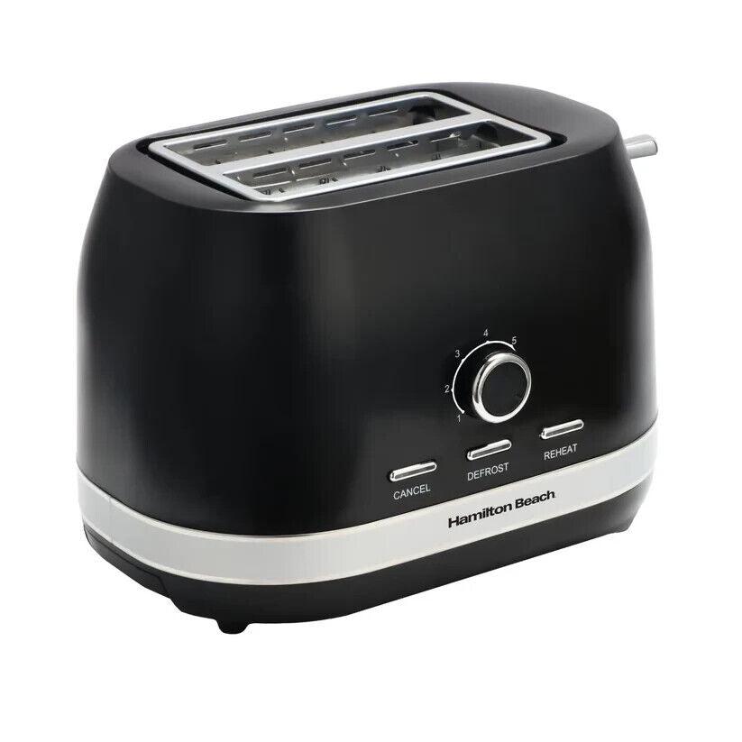 Discover the Hamilton Beach Ella 2-Slice Toaster, the perfect addition to your kitchen for precise and stylish toasting. With 7 variable browning levels, choose your perfect toast effortlessly. The removable crumb tray and integrated cord storage ensure easy cleaning and a tidy workspace. Enjoy even and crisp toasting with 800W power, and the wide slots are ideal for thick-sliced bread and bagels. The modern design, featuring sleek matte black plastic housing, adds a stylish touch to any kitchen. Benefit from the convenient defrost, cancel and reheat settings.