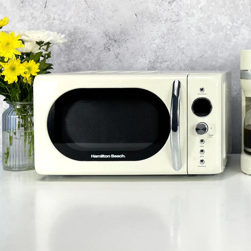 Enjoy easy cooking with this stylish retro inspired Hamilton Beach 700W microwave oven.