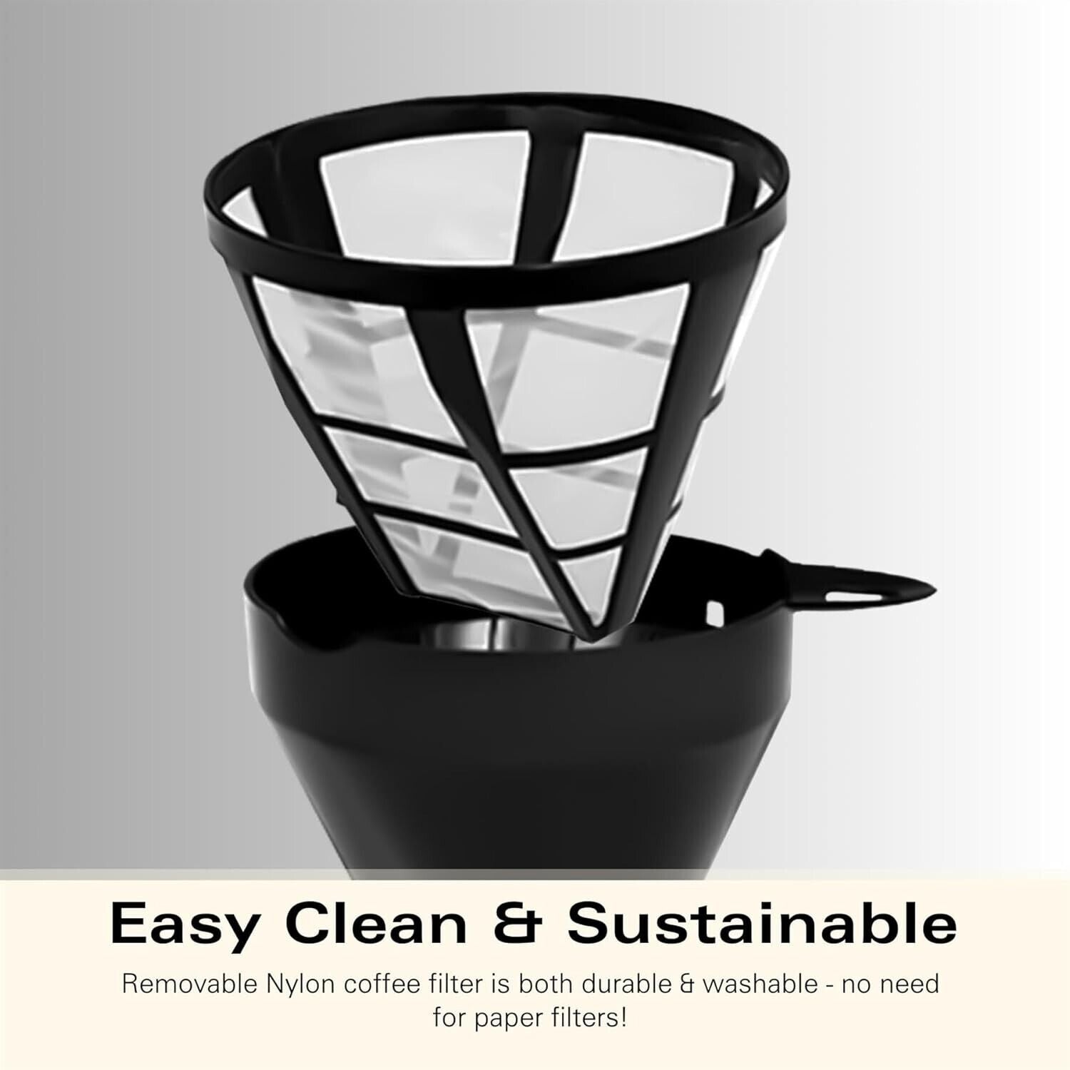 ·         Removable Filter: Same money and the enviroment with The removable Nylon coffee filter is both durable and washable, eliminating the need for paper filters.