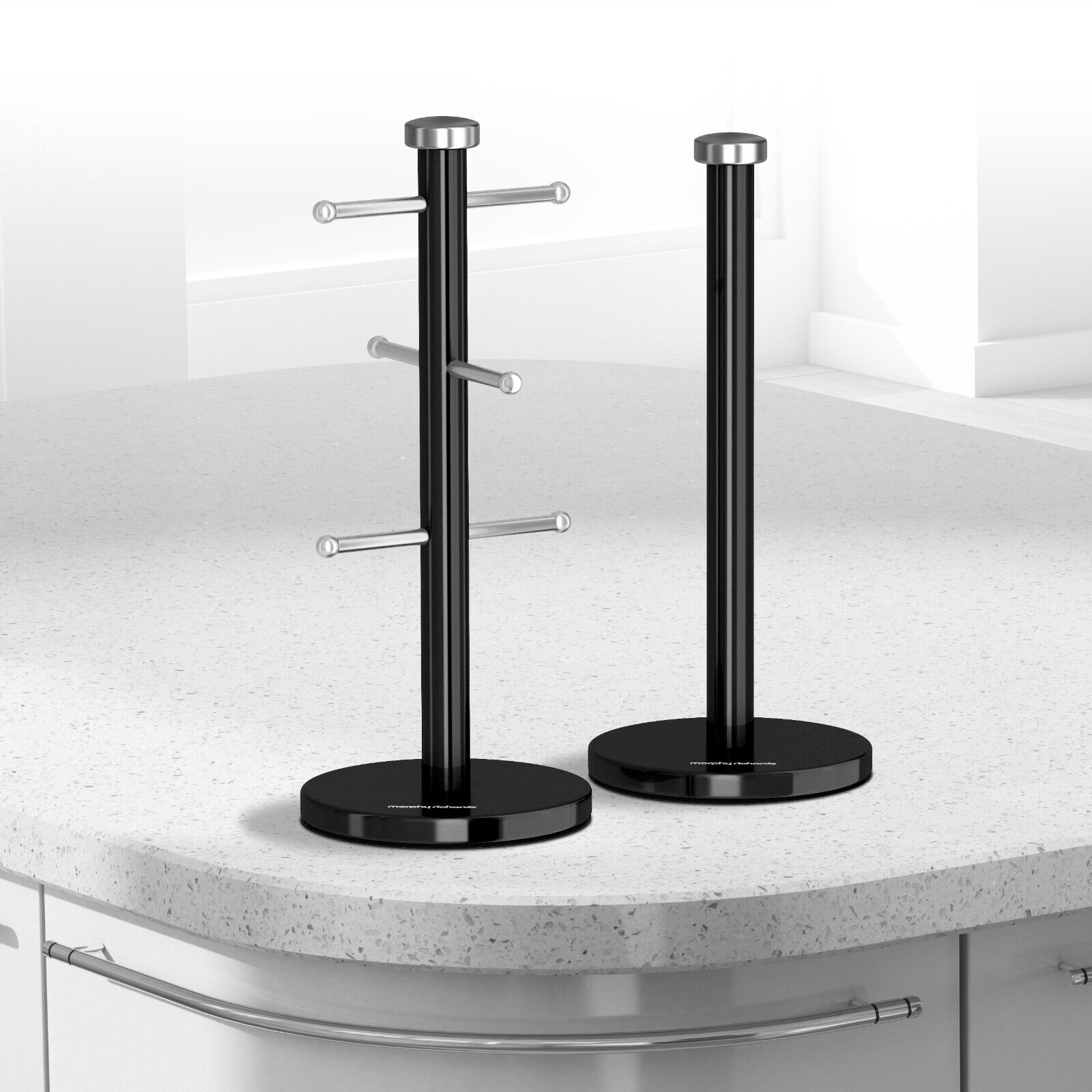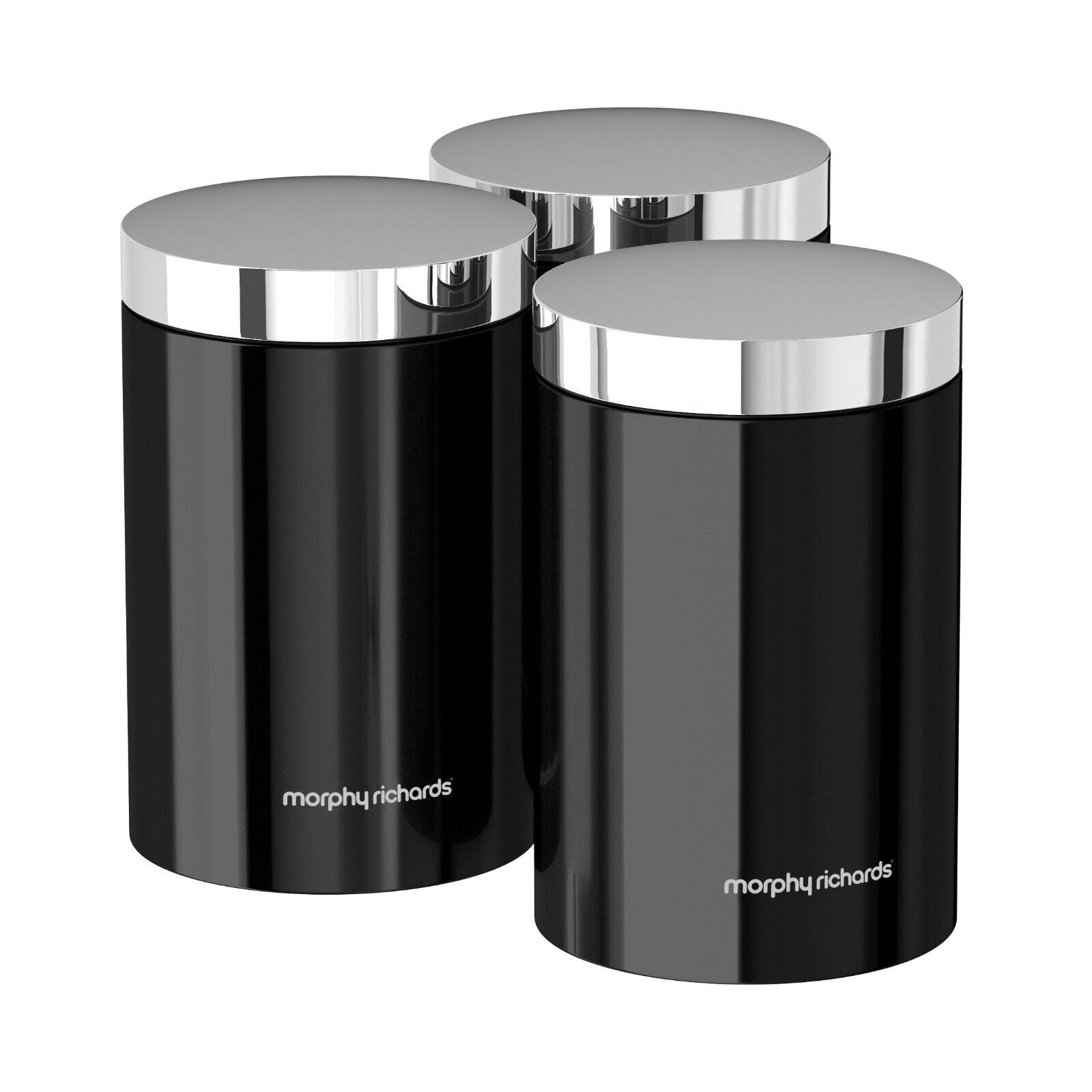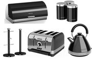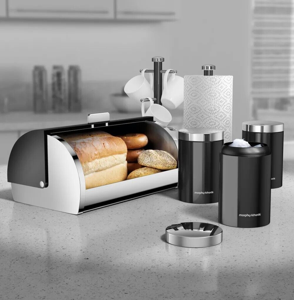 Morphy Richards Venture Retro Black 1.5L 3KW Pyramid Kettle, 4 Slice Toaster & Accents Bread Bin, Canisters, Mug Tree & Towel Pole Matching Kitchen Set of 8. Brand New UK Stock, Fast Dispatch & Free Next Working Day Delivery. 2 Year Manufacturer Guarantee