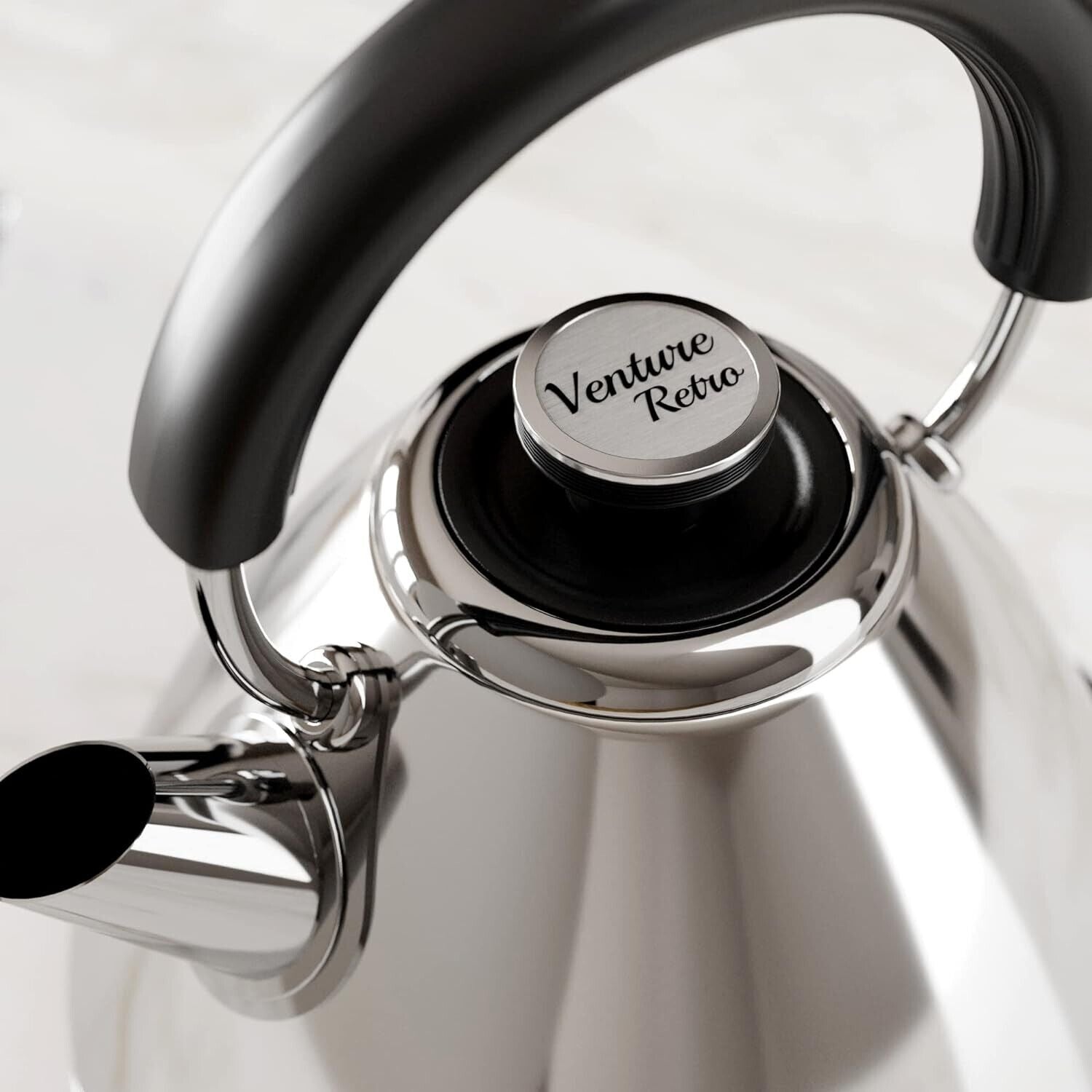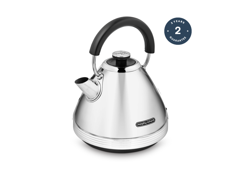 Morphy Richards Venture Retro Polished Steel 1.5L 3KW Pyramid Kettle. Brand New UK Stock, Fast Dispatch & Free Next Working Day Delivery. 2 Year Manufacturer Guarantee