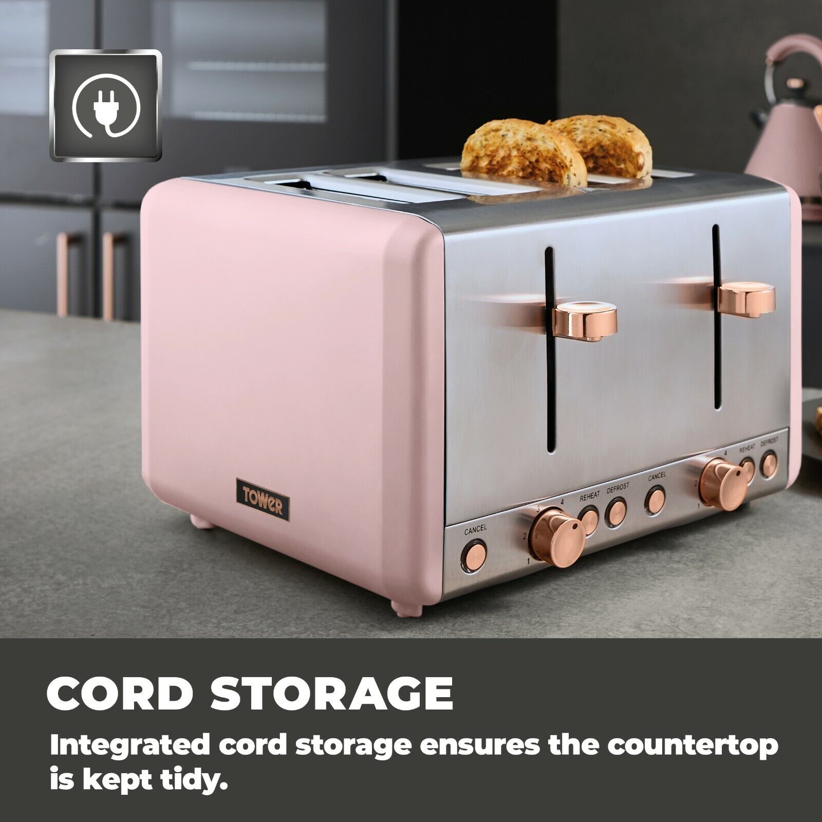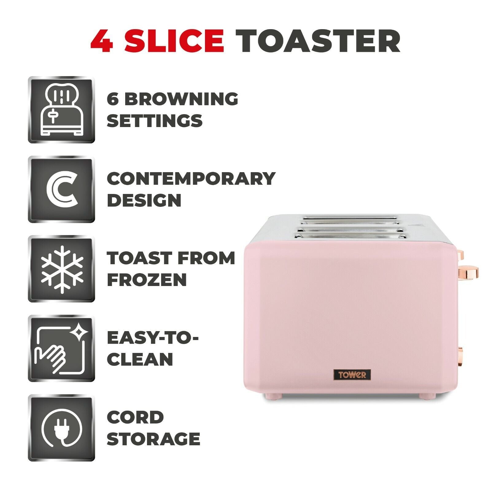 Tower Cavaletto 1.7L Jug Kettle & 4 Slice Toaster Pink & Rose Gold