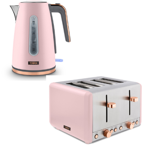 Brand New Tower Cavaletto Jug Kettle & 4 Slice Toaster Set in Pink & Rose Gold. Fast Dispatch & Free Next Working Day Delivery from UK Stock. Full 3 Year Manufacturer Guarantee