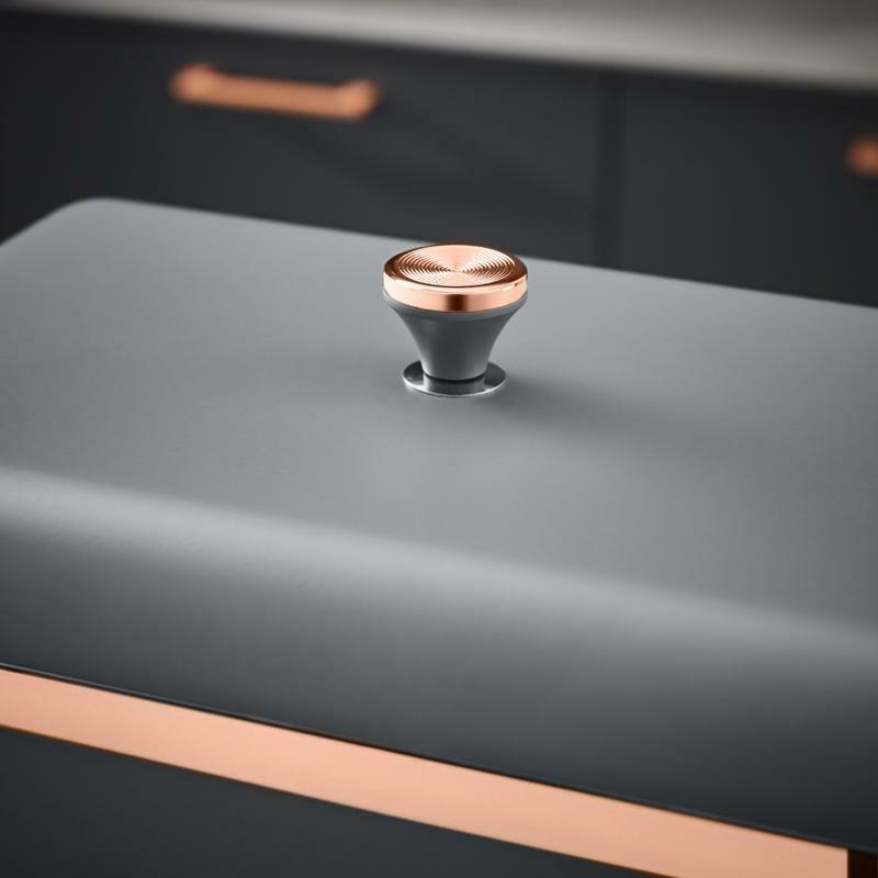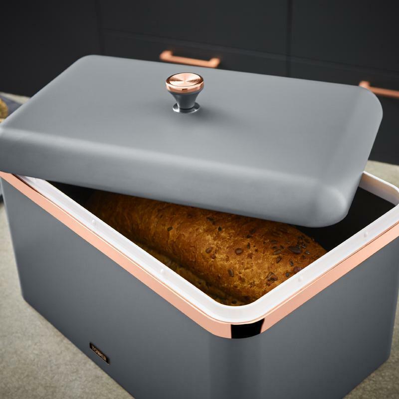 Cavaletto Bread Bin Grey with Rose Gold Tones