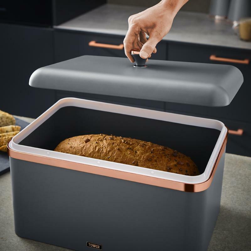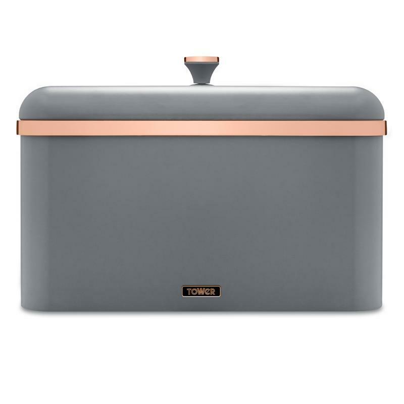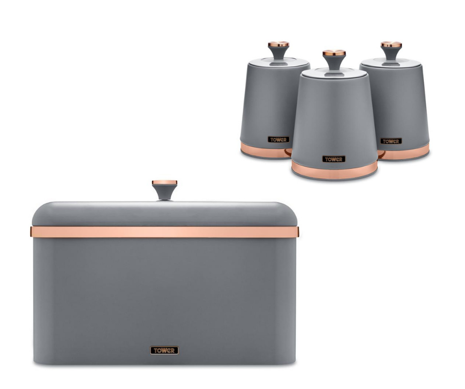 Tower Cavaletto Grey Bread Bin Canisters Kitchen Storage Set with Rose Gold accents
