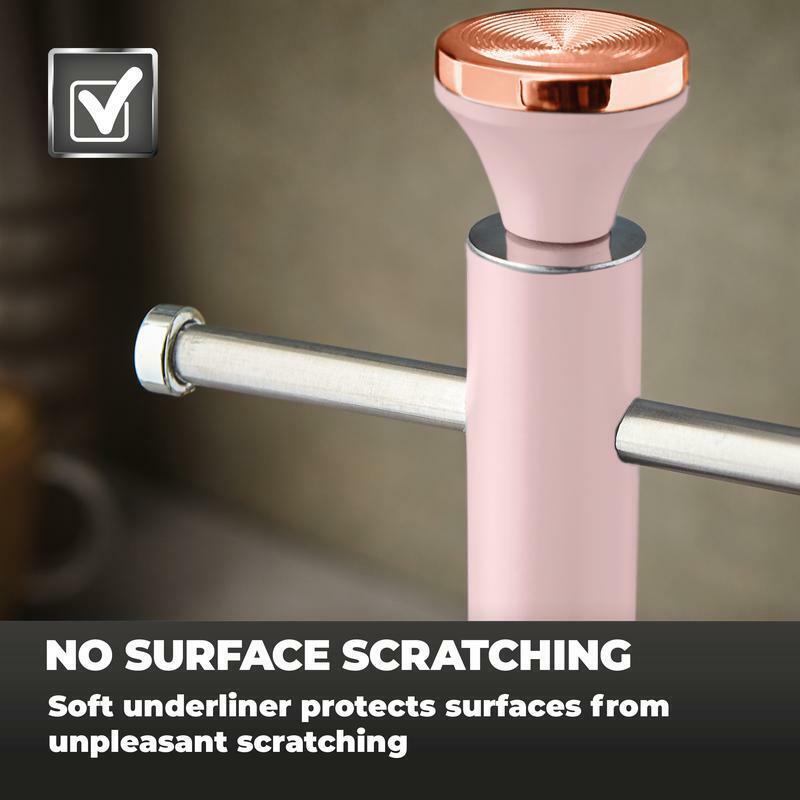 Show off your most prized mug collection with this 6 cup mug tree. Featuring our signature matte pink Cavaletto design complimented by notes of rose gold, the stainless steel design provides a durable accessory for safely storing your cups. This mug tree can comfortably hold 6 mugs of various sizes, with handy stainless steel stoppers on each of the branches to ensure the cups remain in place. The solid base enhances stability across your work surfaces, complete with a soft underliner to prevent against scratching. Easily maintain the Cavaletto design by performing a simple wipe to clean.