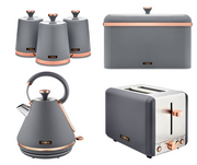 Tower Cavaletto Pyramid Kettle, Toaster, Bread Bin & Canisters Matching Set in Grey & Rose Gold
