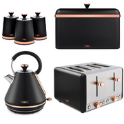 Tower Cavaletto Kettle, 4 Slice Toaster, Canisters & Bread Bin Set Black & Rose Gold