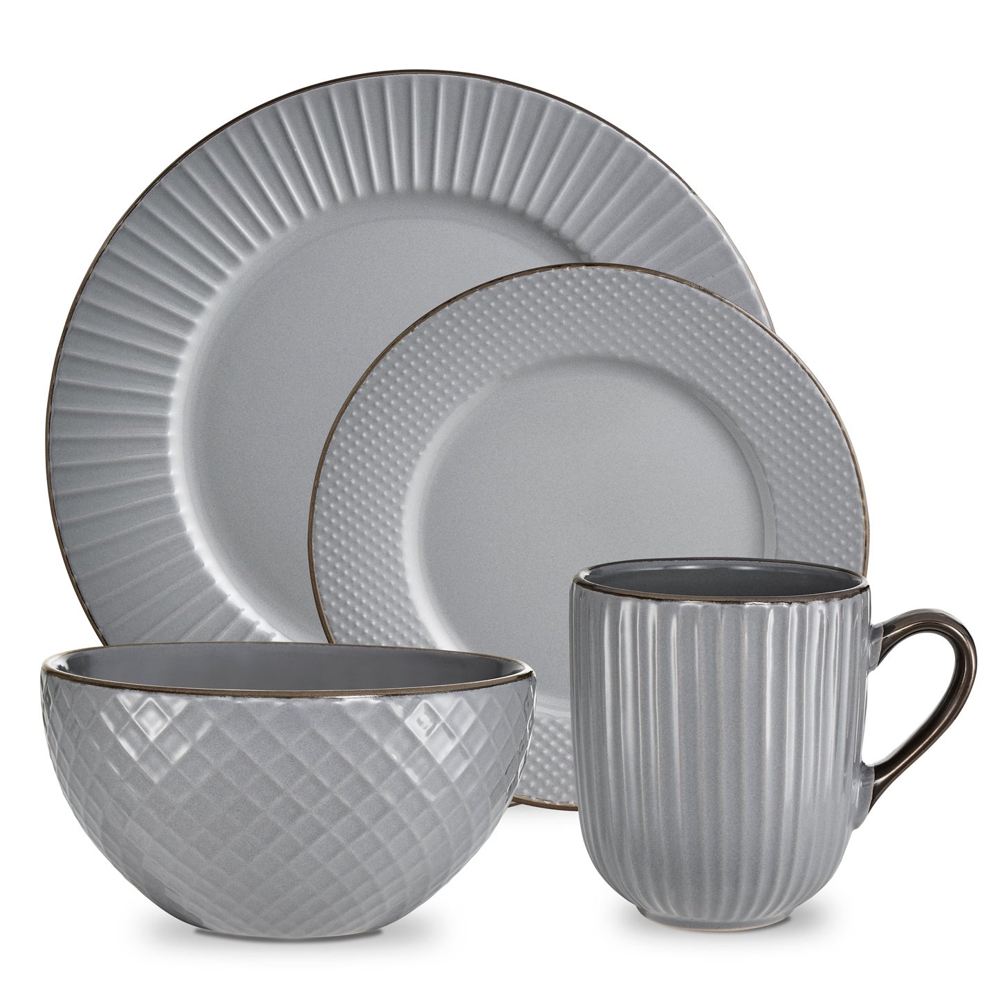 Tower Empire 16 Piece Dinnerware Set - Grey with Burnt Gold Accents