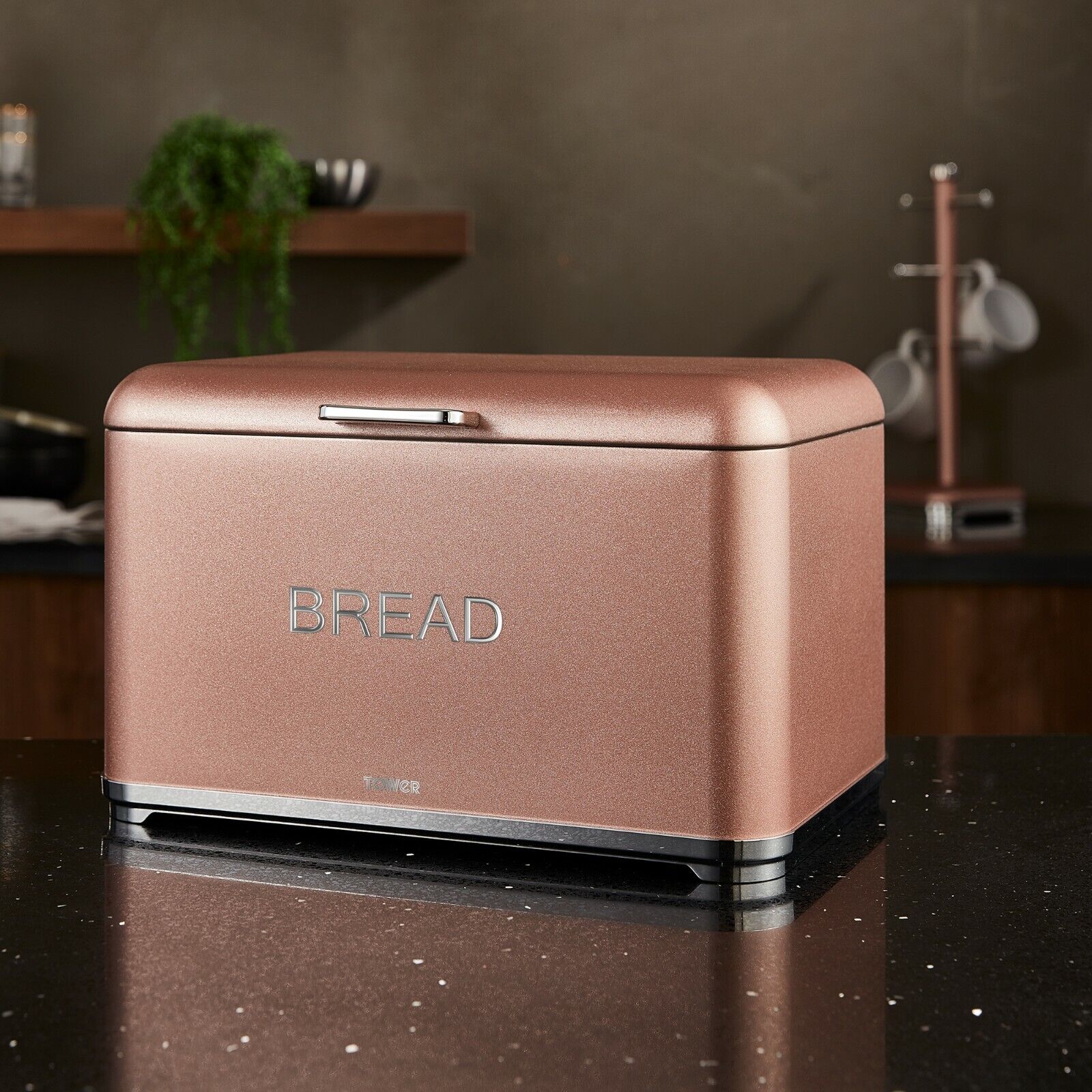 Brand New Tower Glitz Kitchen Bread Bin in Blush Pink with Chrome Handle & Base. Fast Next Day Dispatch & Free Delivery from UK Stock