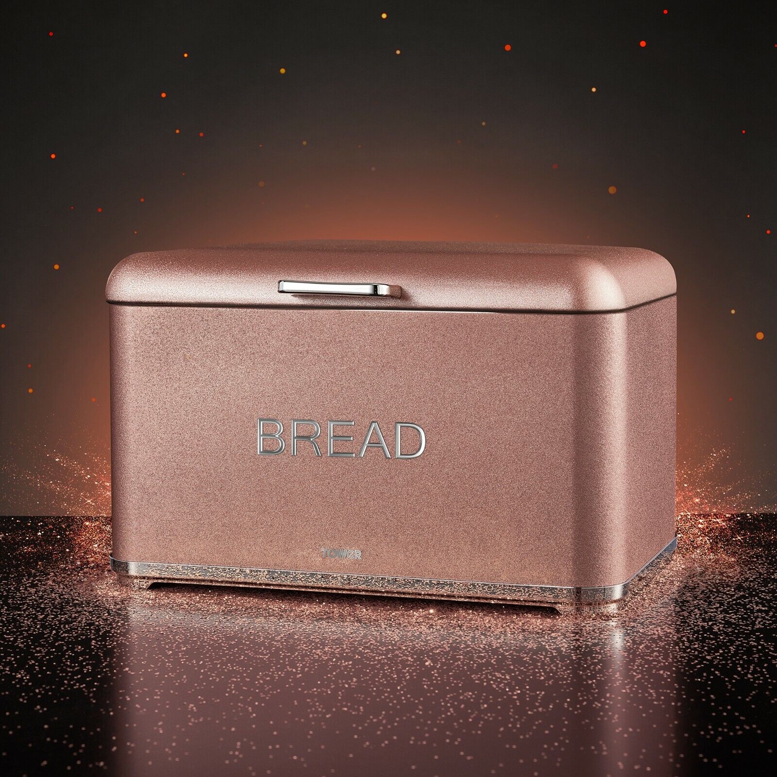Tower Glitz Bread Bin Sparkling Blush Pink 13.5L Kitchen Bread Bin / Food Storage