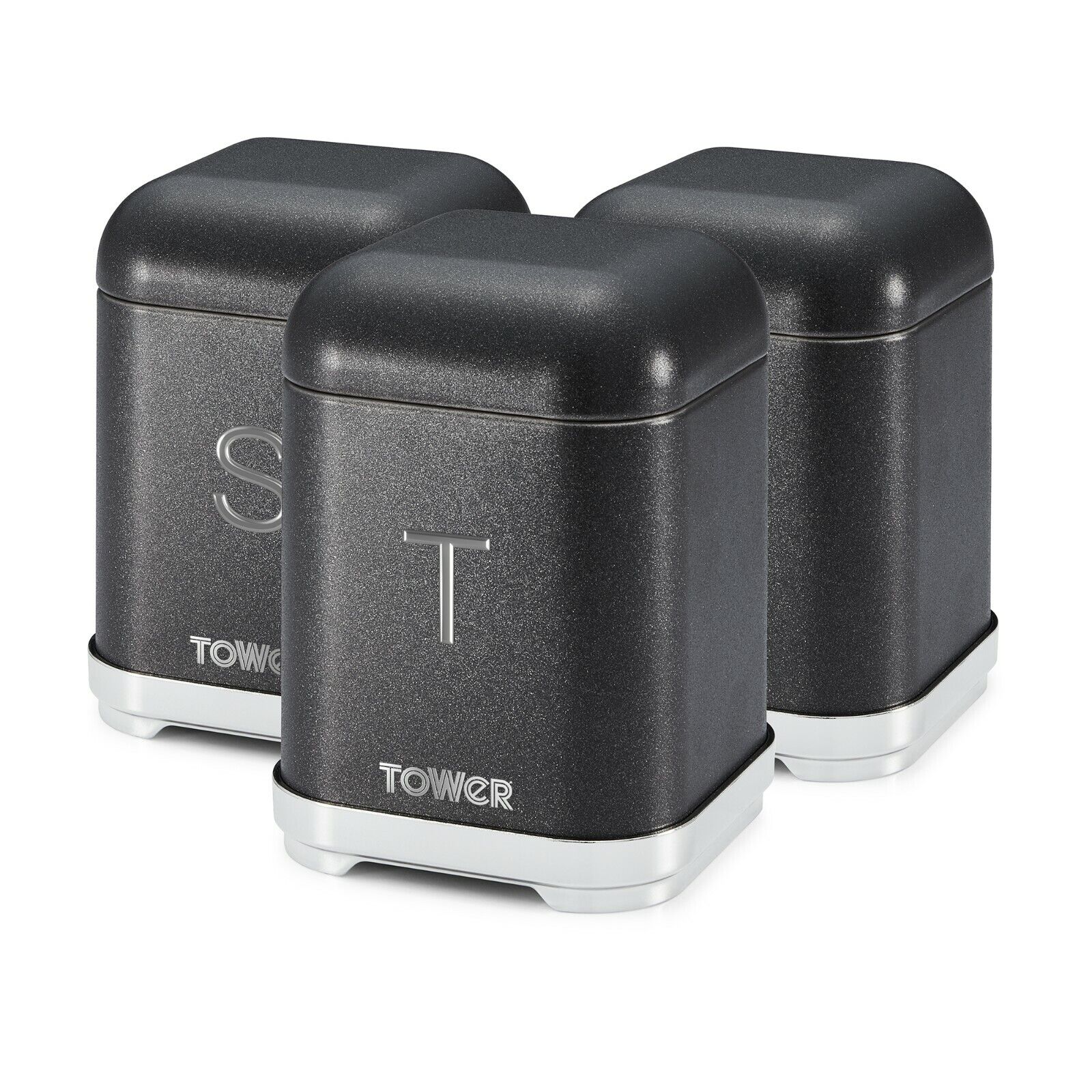 Add some Glitz and glamour to your kitchen with this stylish set of 3 noir storage canisters from Tower. Each canister has been constructed with quality polished steel that adds an extra level of durability. They are perfectly sized to neatly store your tea, coffee and sugar, with prominent raised T, C and S lettering for each canister to let you keep track of their contents easier. They are also easy to clean, requiring just a simple hand wipe so it can maintain the glamorous finish for years to come. It's time to make your kitchen feel fabulous. This noir black Tower Glitz canister set comes with 2 years warranty to provide added peace of mind in the event of a fault.