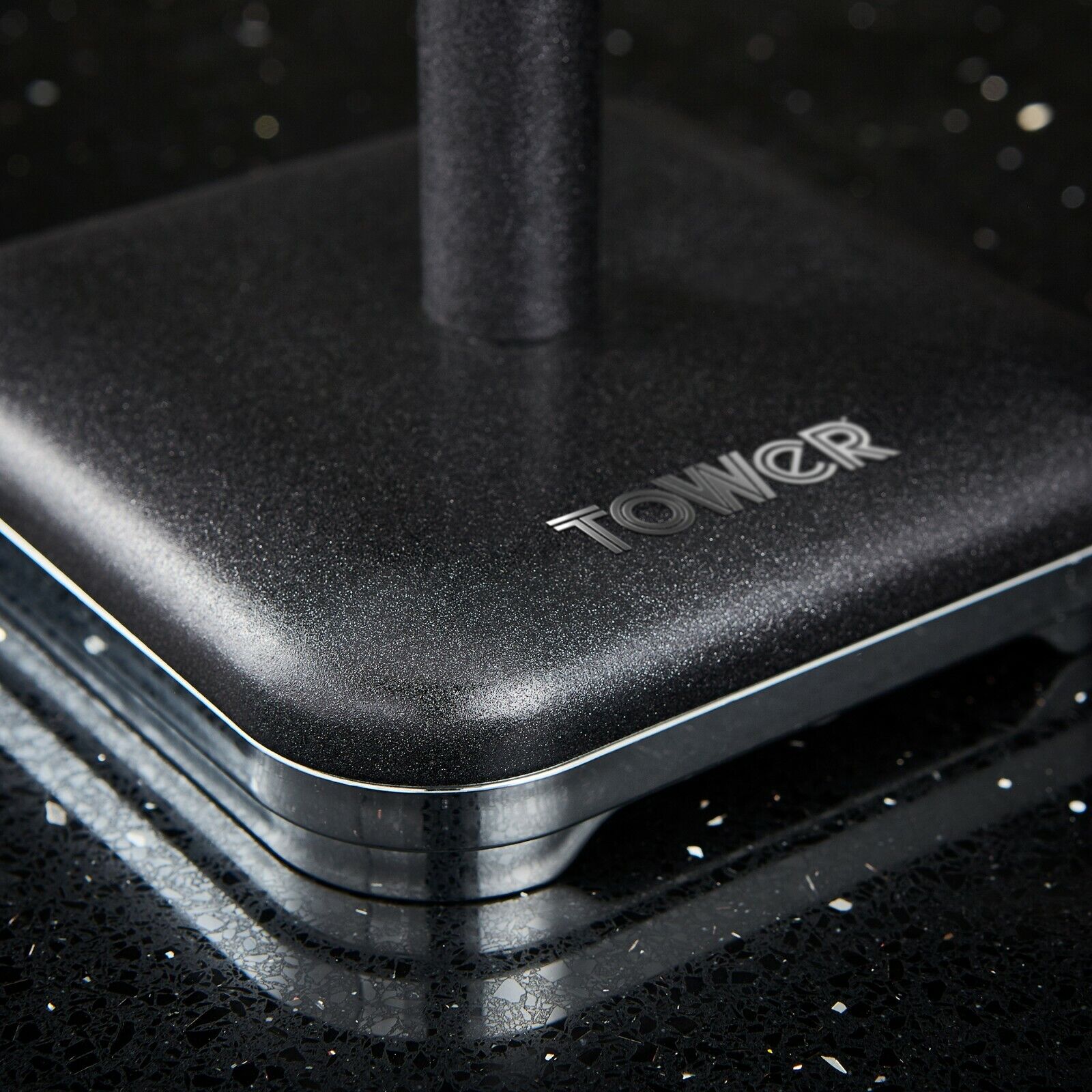 Dangle your mugs amongst the shimmer embellished design of this Tower Glitz noir 6 cup mug tree holder. Consisting of a stainless steel structural body and base, this mug tree features a black colour coated glitz finish to add a glistening feature to your kitchen. The 6 steel branch design features stoppers to prevent each mug from slipping, offering complete security whilst displaying your most prized cups. The caps and base feature a chrome plated finish, combine durability with glamorous design. Maintain the pristine appearance with a simple wipe clean for easy maintenance. This noir Tower Glitz 6 cup mug tree comes with 2 years warranty to provide added peace of mind in the event of a fault.