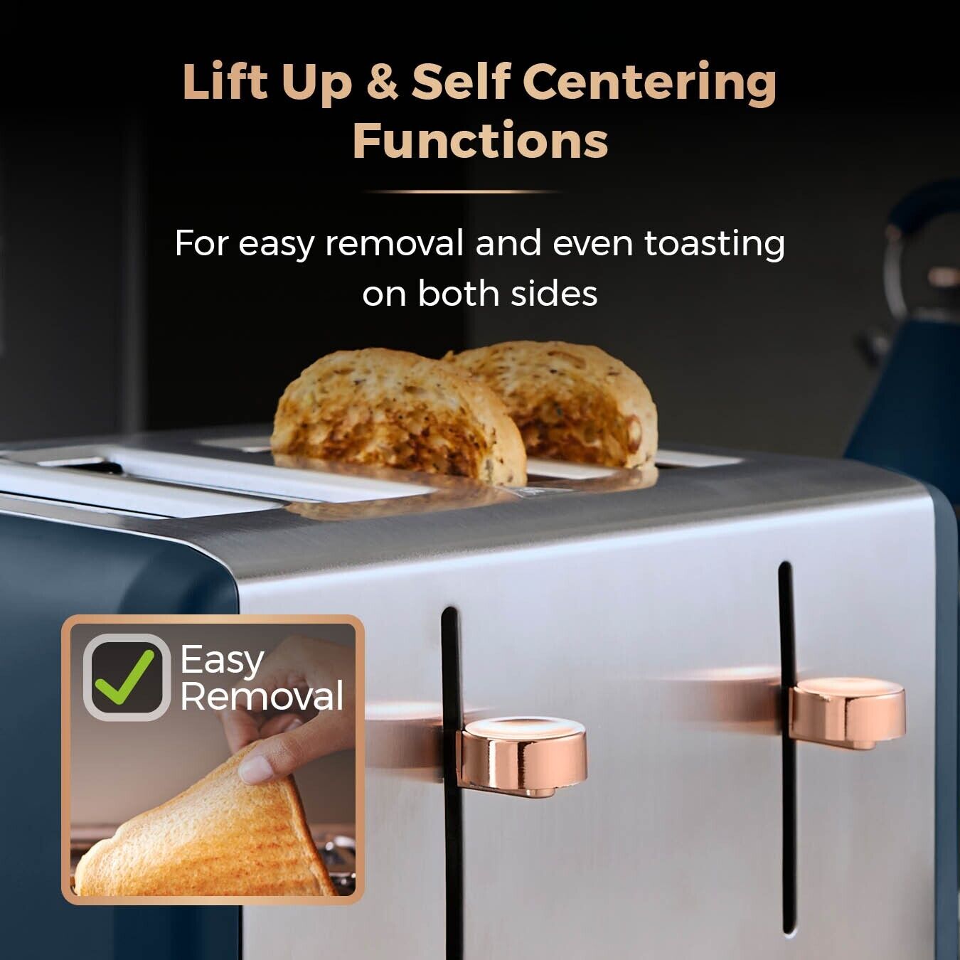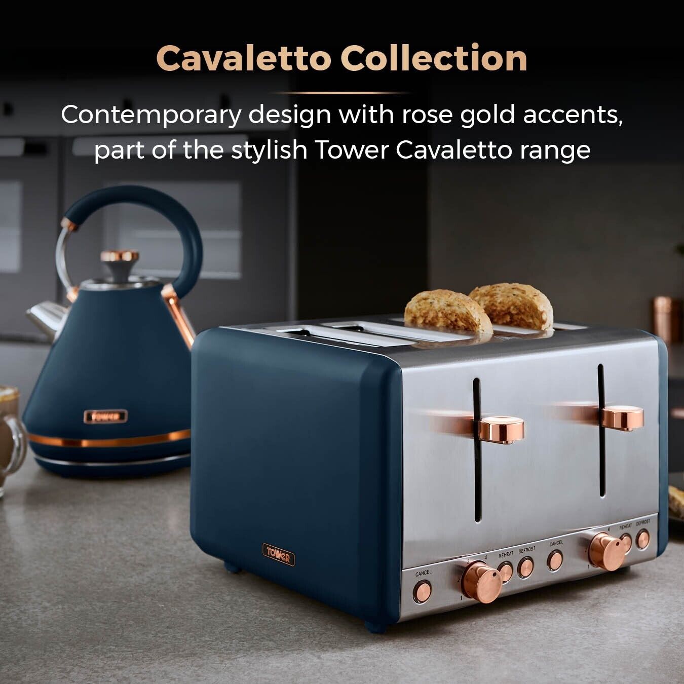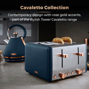 Cavaletto 1800W 4 Slice Toaster in Midnight Blue & Rose Gold