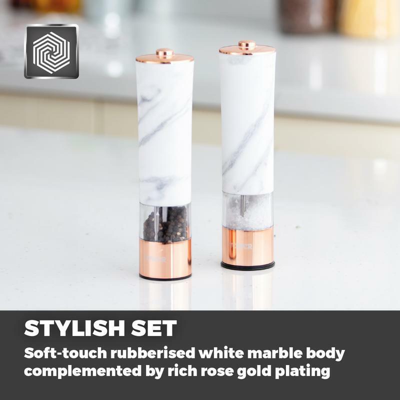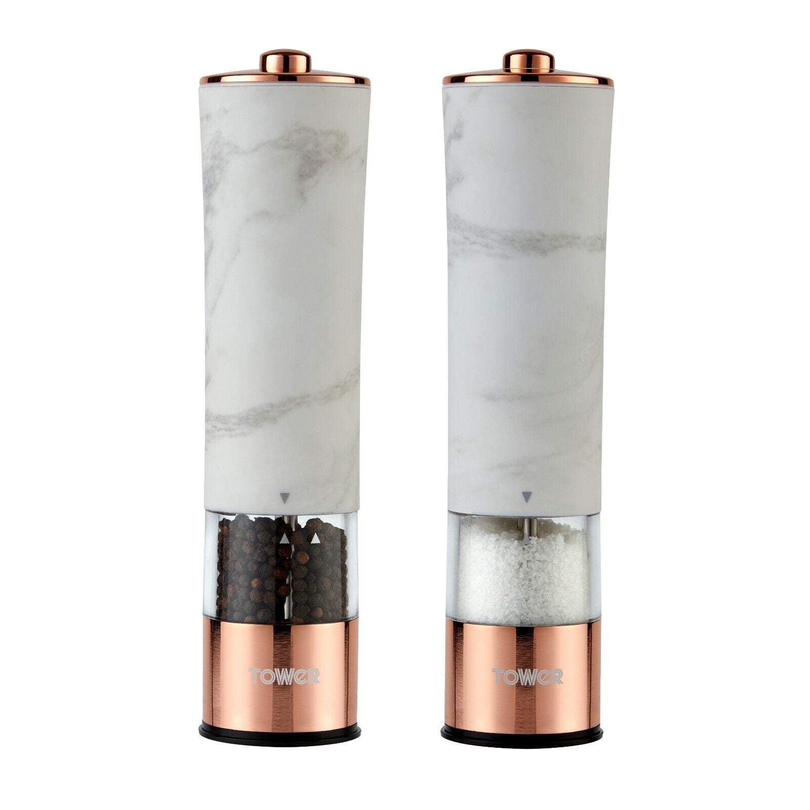 Tower Marble Rose Gold Electric Salt & Pepper Mill Set 3 Year Guarantee