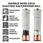 Brand New Marble Rose Gold Electric Salt & Pepper Mill. Brand New UK Stock. Free Delivery. 3 Year Manufacturer Guarantee