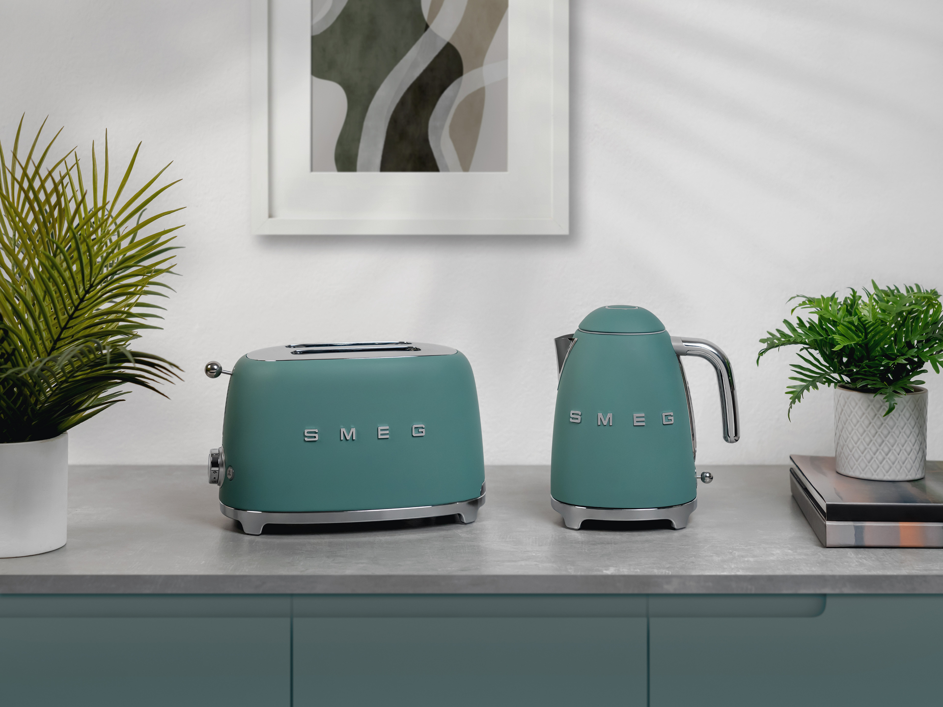 SMEG Emerald Green 1.7L 3KW Kettle & 2 Slice Toaster Matching Set. Special Edition Kettle & Toaster Set with a Stunning Matte Finish.
