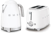 Smeg White 1.7L 3KW Variable Temperature Kettle and 2-Slice 950W Toaster Retro 50`s Design Set KLF04WHUK/TSF01WHUK