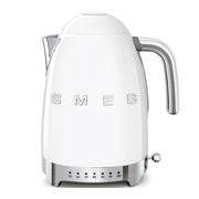 Housed within a curvaceous stainless steel structure, the Smeg kettle reflects both interior and exterior beauty. Its 3kW concealed heating element and removable stainless steel limescale filter reduces the risk of limescale build-up forming and affecting its unrivalled performance. Specifically designed for tea and coffee lovers, the keep warm function and 7 variable temperature options range between 50-100C for a more buildable and customised beverage. The 1.7 litre capacity provides ample space for preparing up to 7 cups of boiled water, with a soft opening lid to make for a simple single handed refill. Keep a clear view to the contents inside with the water level indicator window, while the intelligent automatic shut off stops operation at 100C. The 360 swivel base features anti-slip feet fixtures to secure stability on the kitchen surface. The stainless steel structures are wrapped in a retro inspired white coating, for a combination of durable materials and timeless design.