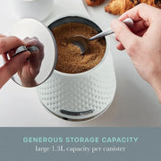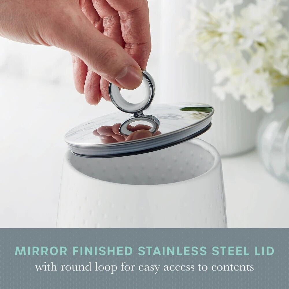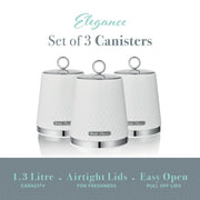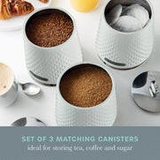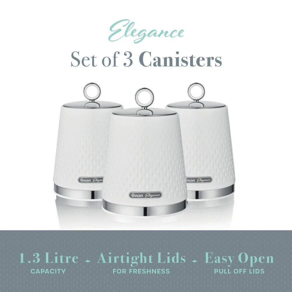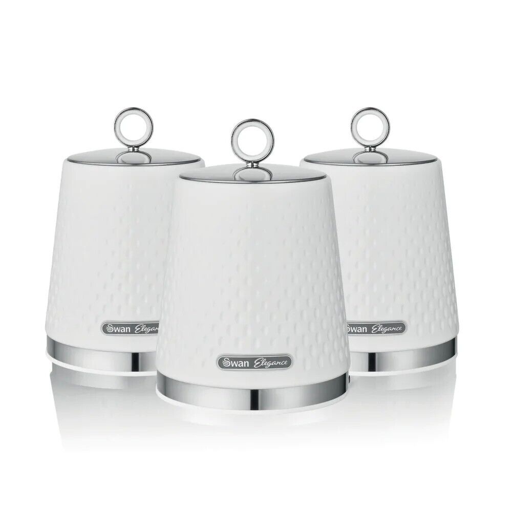 Swan Elegance White Tea, Coffee, Sugar Canisters with a Premium Textured White Finish and Stainless Steel Accents