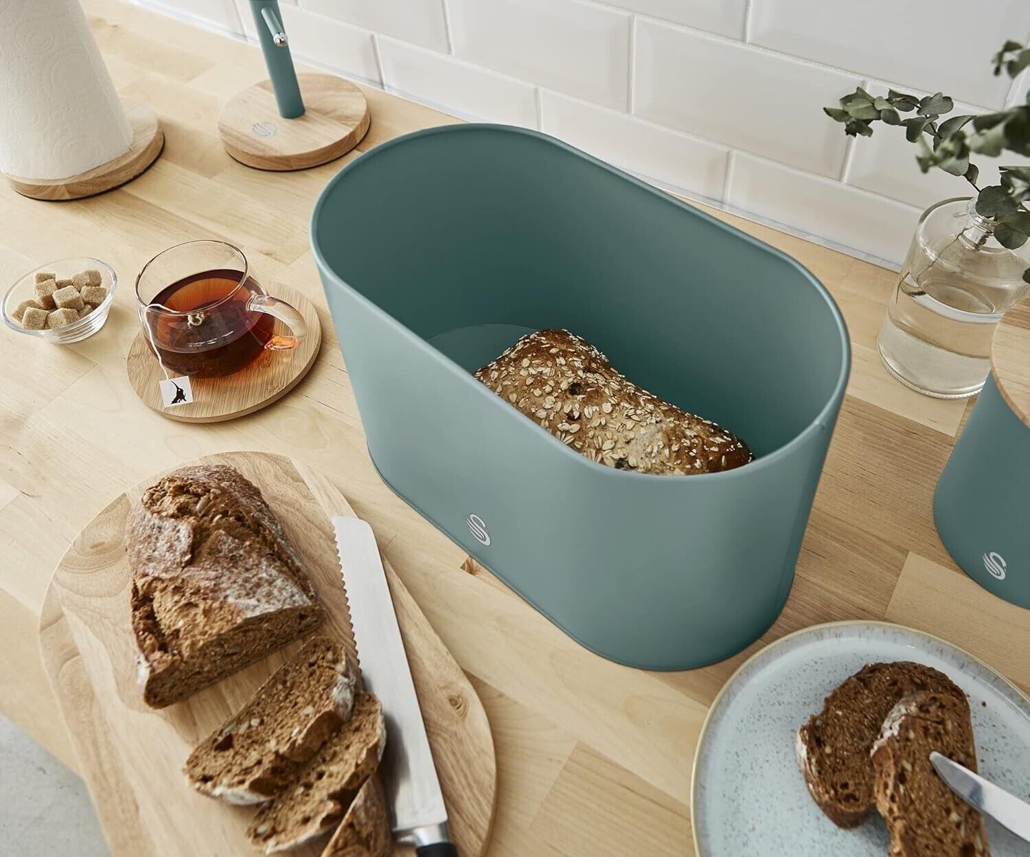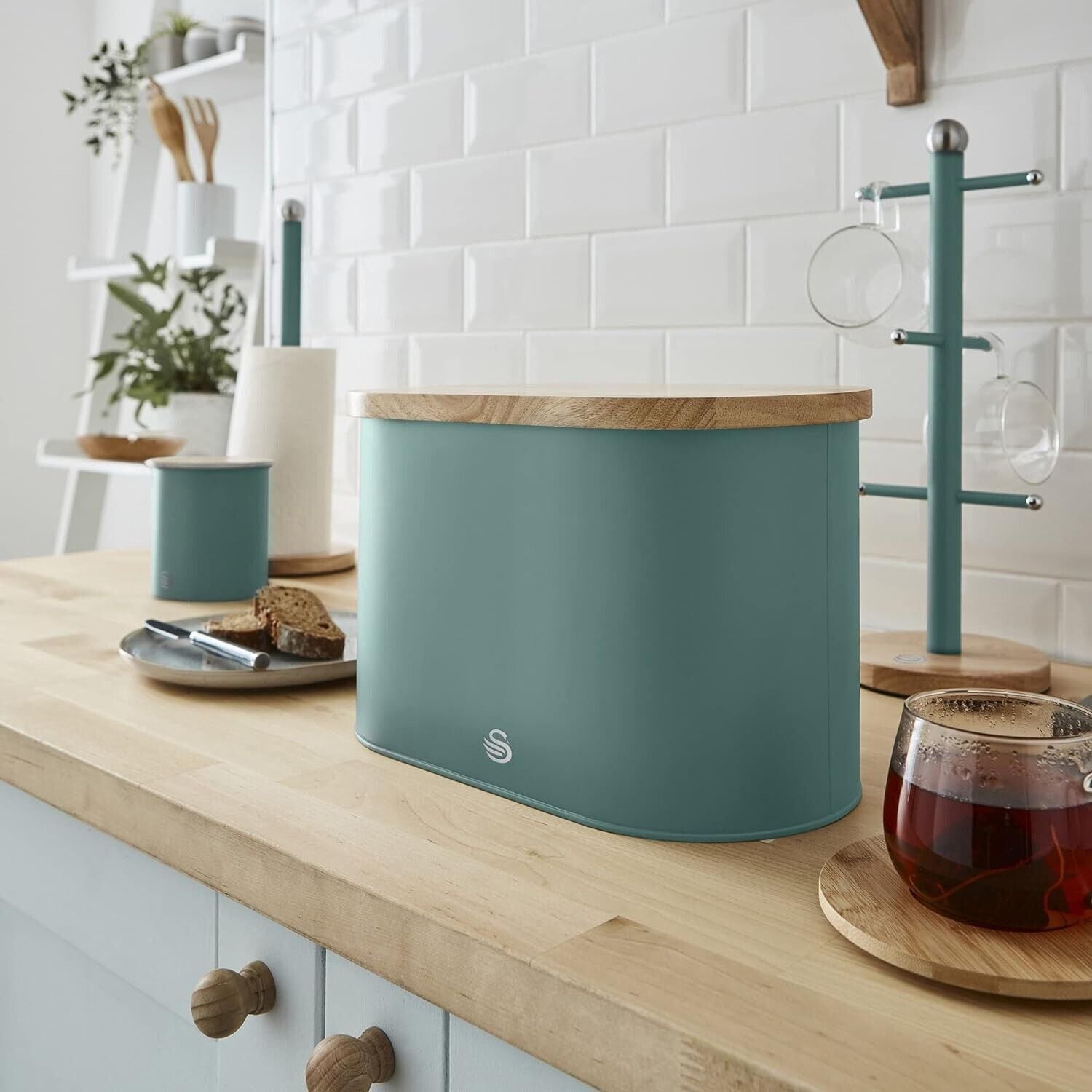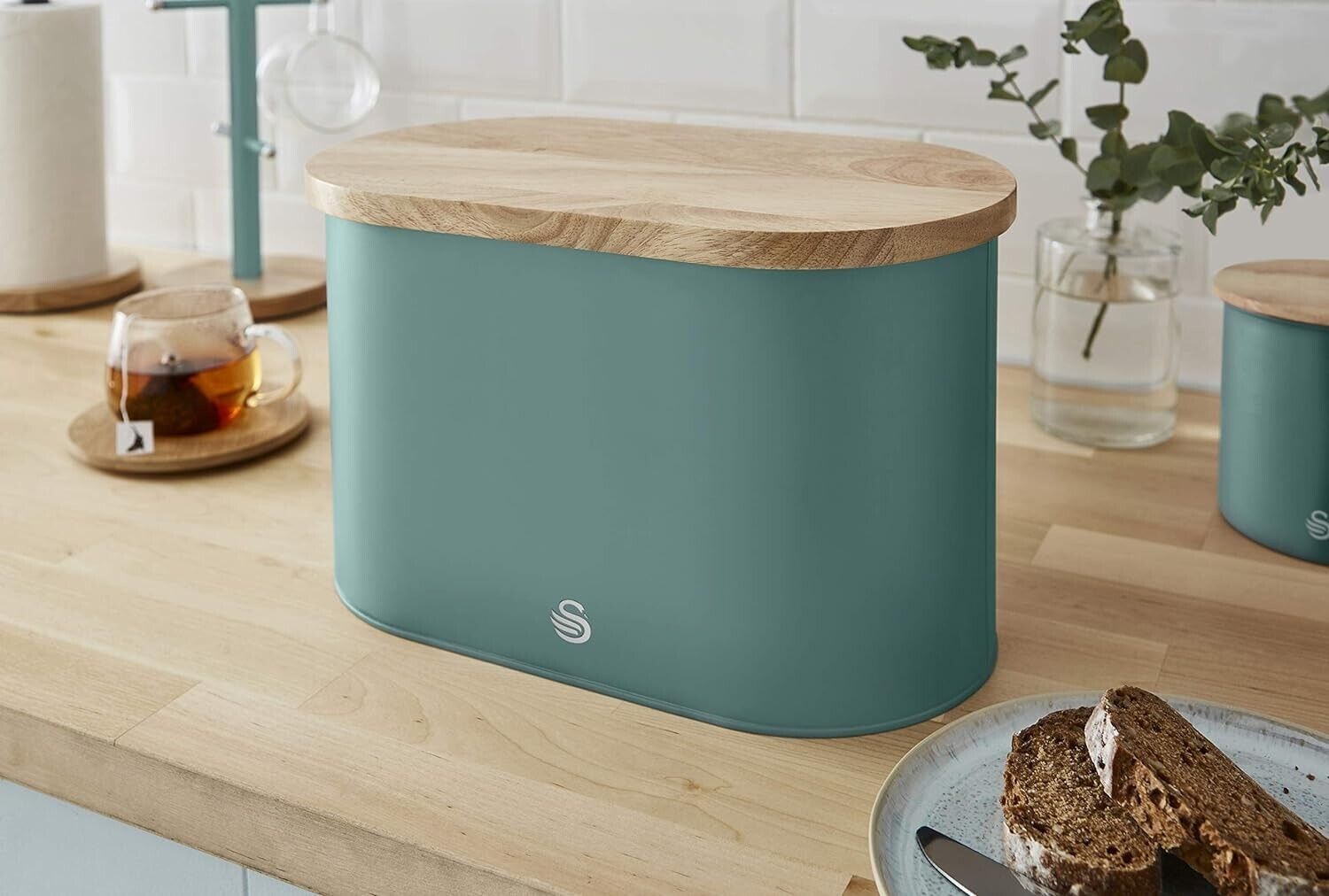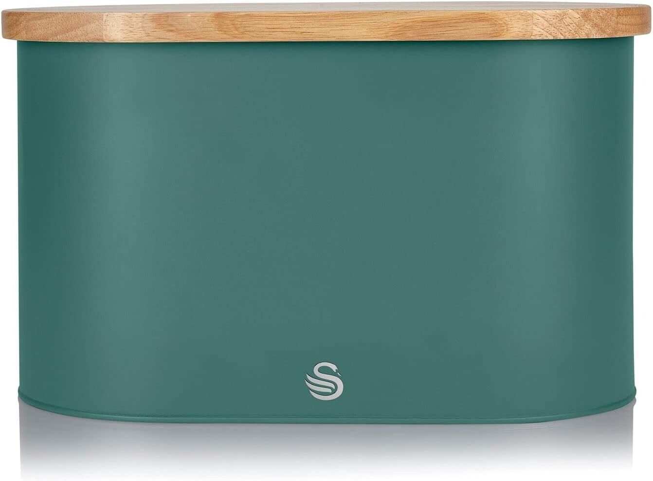 Swan Nordic Green Scandi Bread Bin with Bamboo Cutting Board Lid SWKA17512GREN