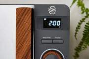 Cook meals in a fast and convenient way with this Swan Nordic SM22036LGRYN grey digital microwave. Packed with six different power levels and 60-minute digital timer, you can reheat leftovers or cook up a ready meal with precision in no time. This 800W microwave also features an auto-cook function with pre-set options that sets the appropriate time and power level for different foods, taking the guesswork out of cooking. If you are pressed for time and need a quick meal from the freezer, then the handy defrost option will allow you to cook straight from frozen for added convenience. This Swan microwave has a large 20 litre capacity with a 270mm high quality glass turntable, which provides complete coverage of your food to ensure its cooked thoroughly. It also features an LED display that shows the clock and remaining cooking time. The Swan Nordic collection is inspired by Scandinavian minimalist design, featuring neutral colour schemes and wood-effect accents to compliment any home décor