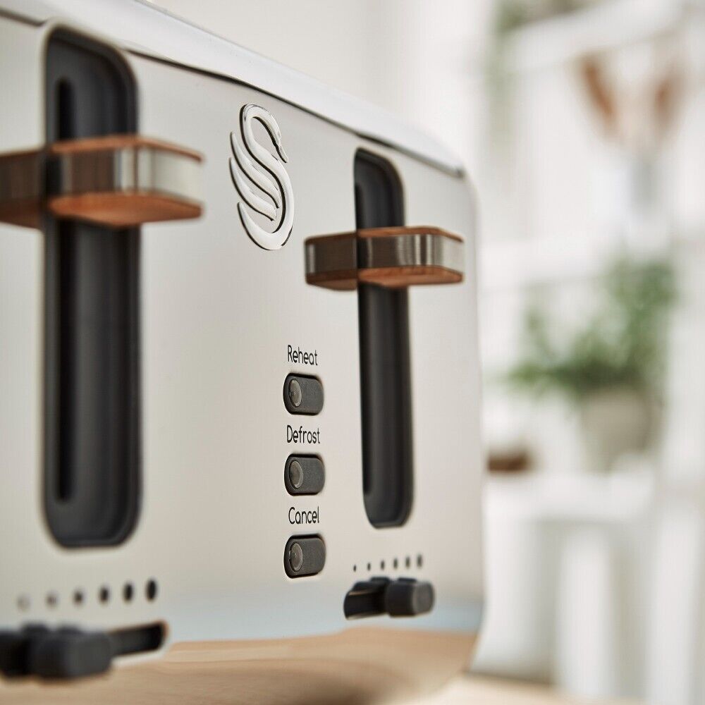 Swan Nordic White 1.7L Jug Kettle, 4 Slice Toaster, 800W 20L Microwave, Bread Bin, Canisters, Mug Tree & Towel Pole Matching Set