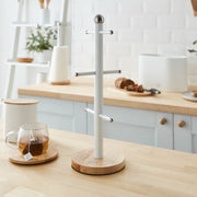The Swan Nordic mug tree keeps mugs and cups close to hand and your kitchen surfaces perfectly clean and tidy. Inspired by Scandinavian design, it combines sophistication and functionality and is a convenient and elegant way to display up to six of your favourite mugs and cups. In Cotton White or Slate Grey with steel accents and a sturdy bamboo base, it is both a practical and stylish addition to any kitchen.