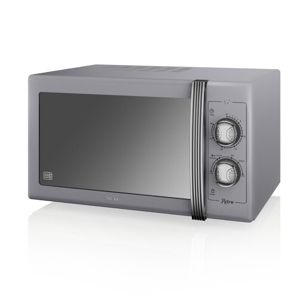Brand New Swan Retro Kitchen Set in Vintage Grey including 1.5L 3KW Jug Kettle, 2 Slice Toaster & 900w 25L Manual Microwave
