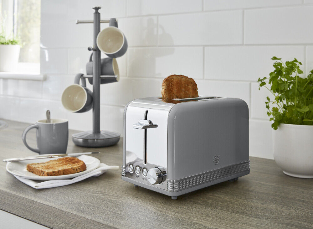 The 2 Slice Retro Toaster comes with an adjustable knob for 6 levels of browning to help you make the perfect slice of toast and a slide out crumb tray to help keep your kitchen clean.